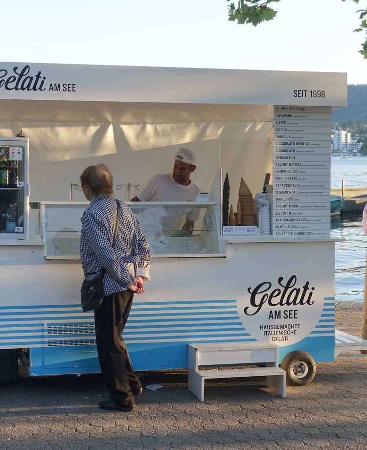 Gelati am See ist eine Zürcher Institution. Seit 1998 verkauft Dani Kissling Glace direkt am See – schlicht, ehrlich und ohne Schnickschnack. Für Kinder gibt es ein kleines Plastiktierli, für Erwachsene oft ein Probiererli. Sommer pur.