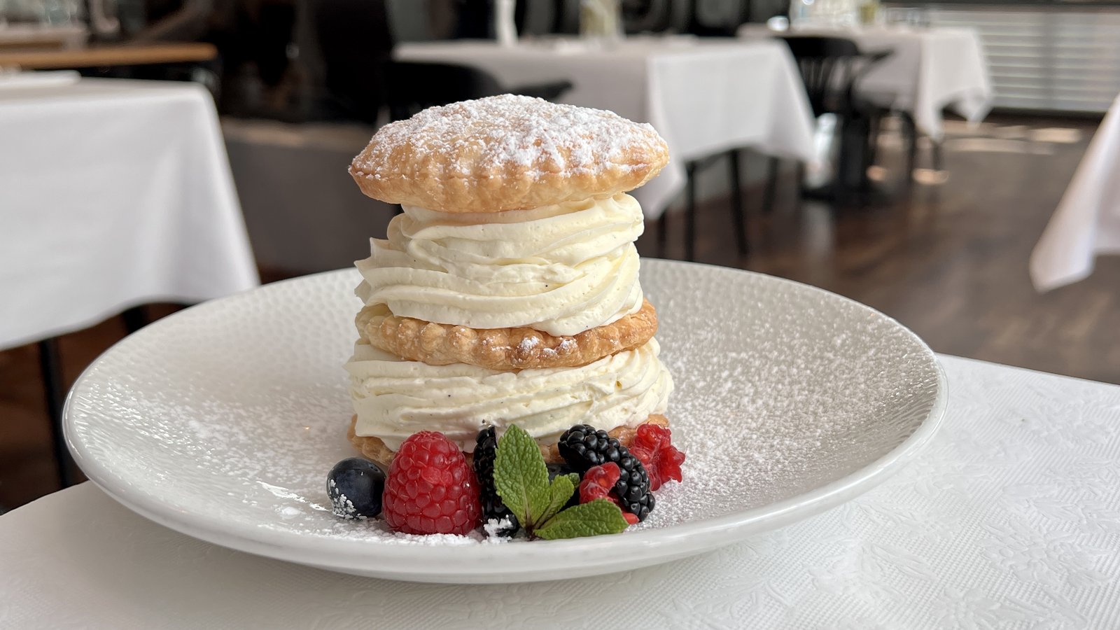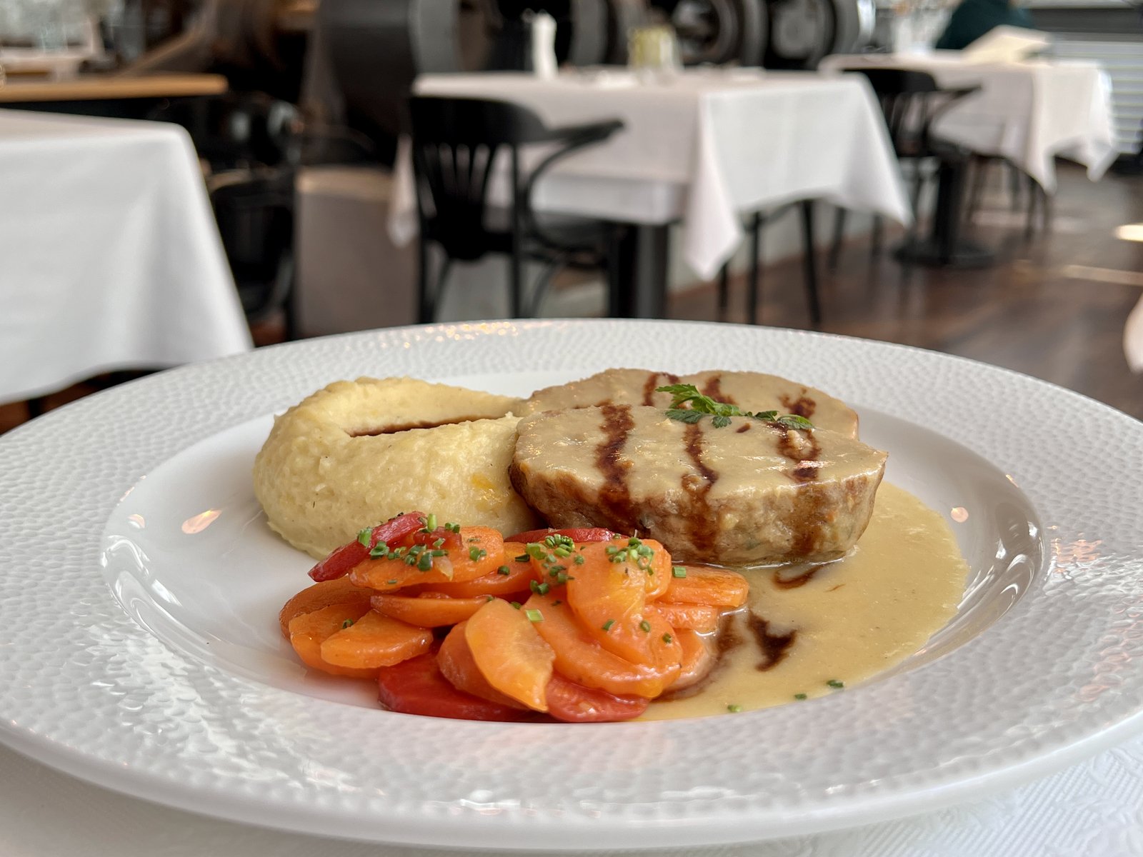 Mein Tipp: Hackbraten mit Weinempfehlung vom Team, Risotto und die hausgemachte Cremeschnitte (1-, 2- oder 3-stöckig ;-))