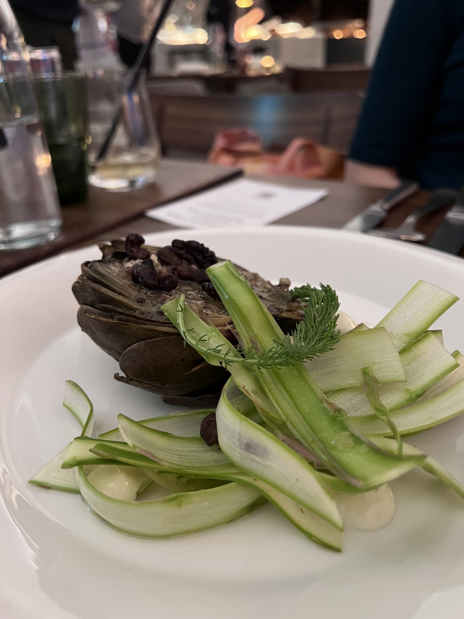 Grillierte Artischocke mit Baumnuss-Vinaigrette und Limettensauerrahm