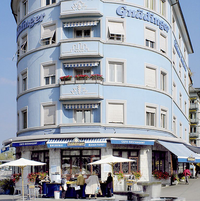 Für mich ist Gnädinger vor allem Bäckerei und Konditorei, obwohl mal sich auch im Restaurant den ganzen Tag über verköstigen kann. Von Brotwaren, über belegte Sandwiches, Apérogebäck hin zu Pâtisserie und Torten, man findet im Gnädinger alles was das Herz begehrt. Morgens startet man mit einem feinen Birchermüsli in den Tag. Mittags und abends stehen verschiedene Gerichte, vorwiegend Schweizer Küche zur Auswahl. Viele Zürcher (and myself ;)) sind der Meinung, dass es hier die besten Gipfeli Zürichs gibt.