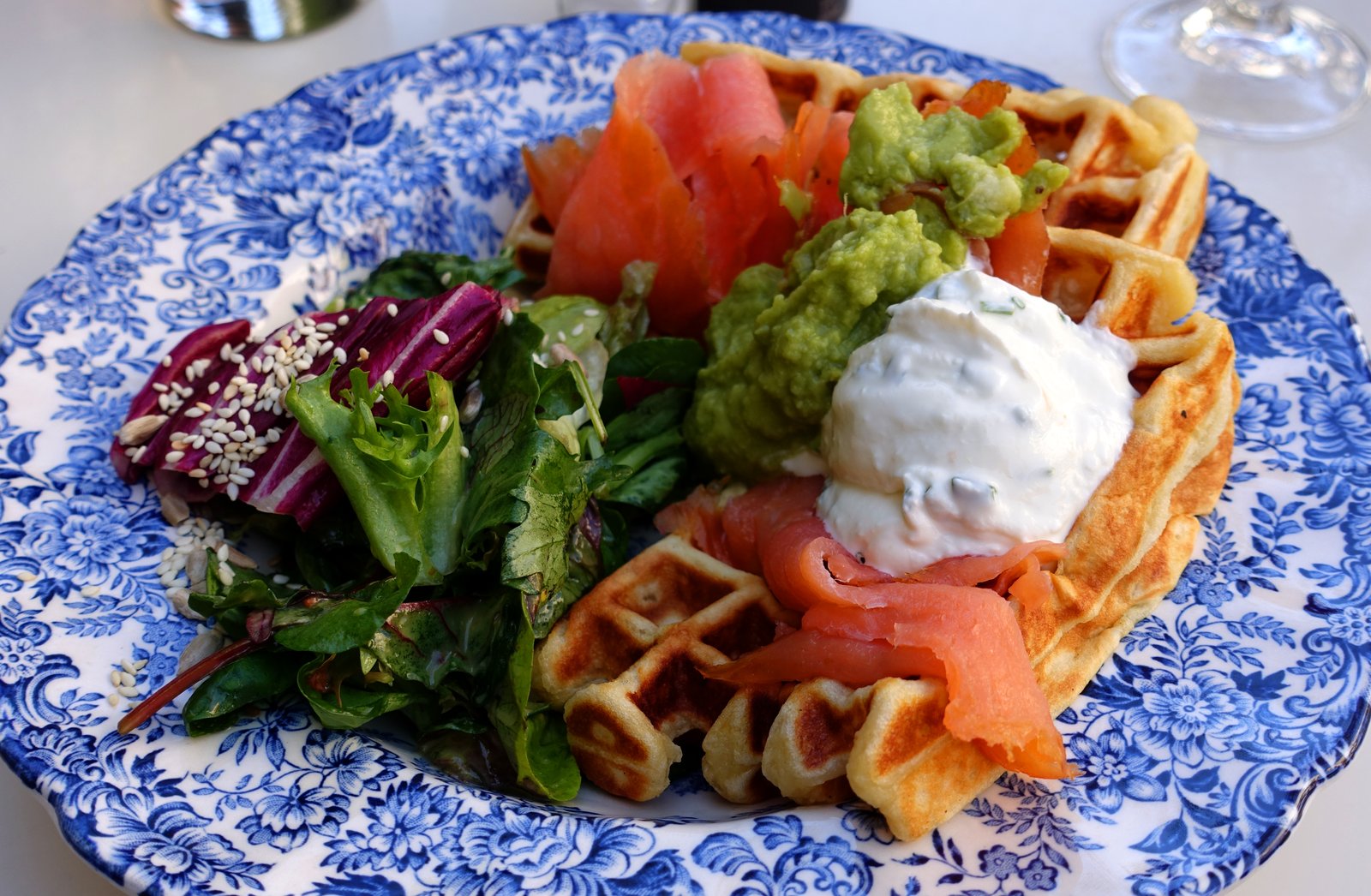 Mein Tipp: Waffeln mit Rauchlachs, Avocadostampf und Kräutercrème