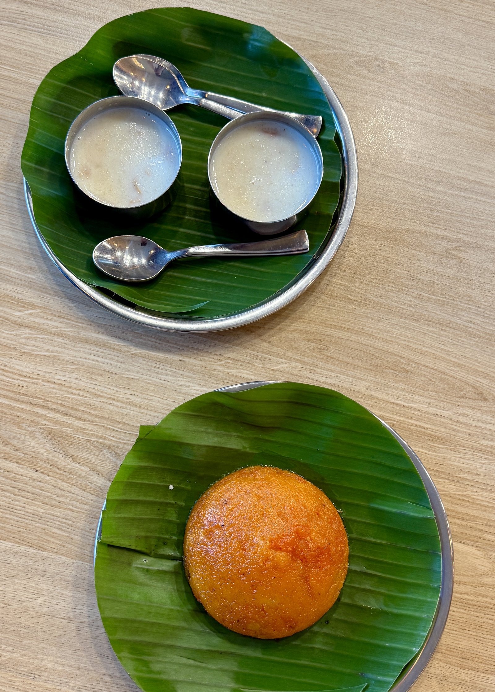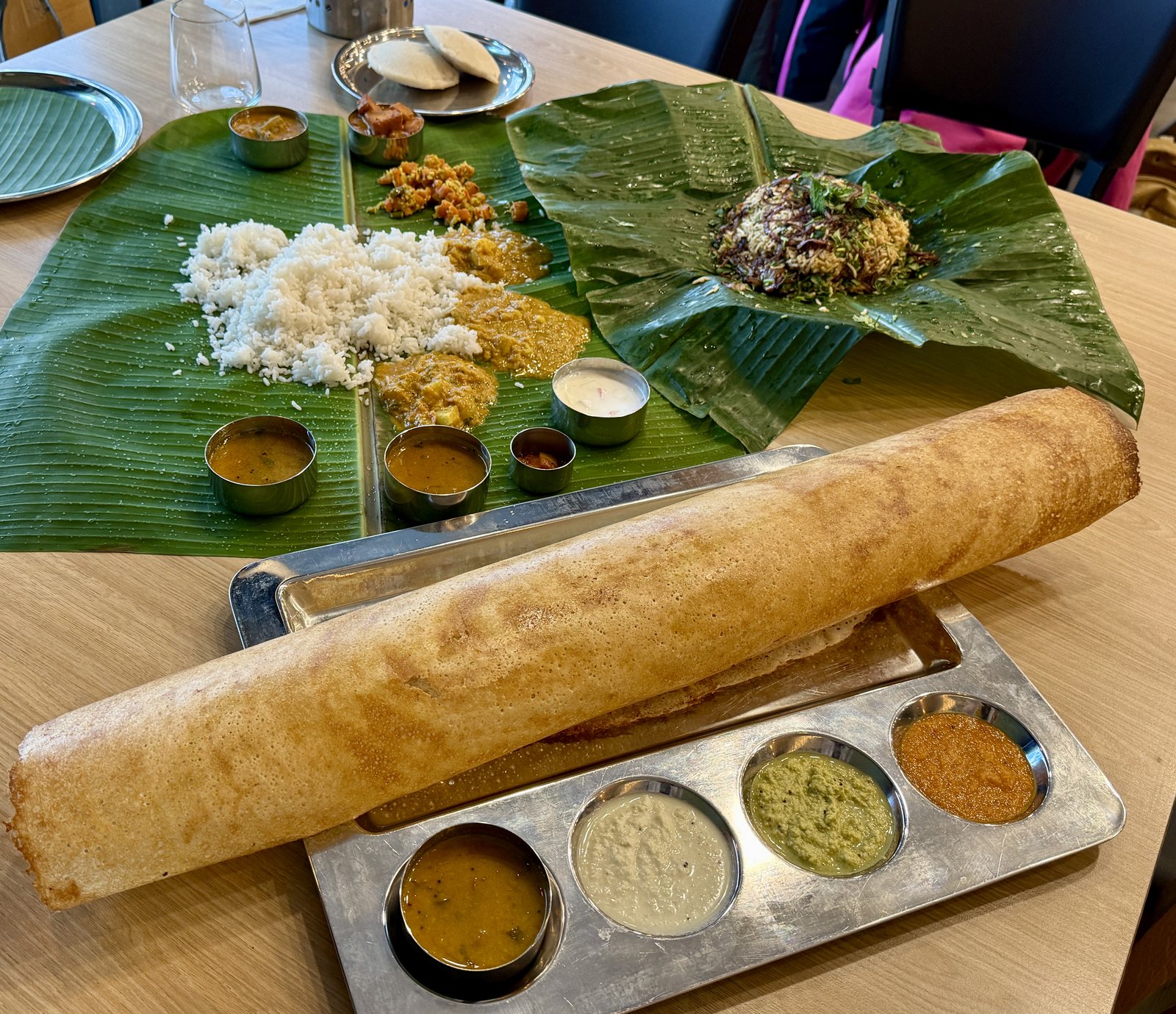 Chilly Paneer, Dosa Ghee Roast Masala, Saravanaa Special Meals, Vegetable Briyani, als Dessert Rava Kesari und Special Madras Coffee