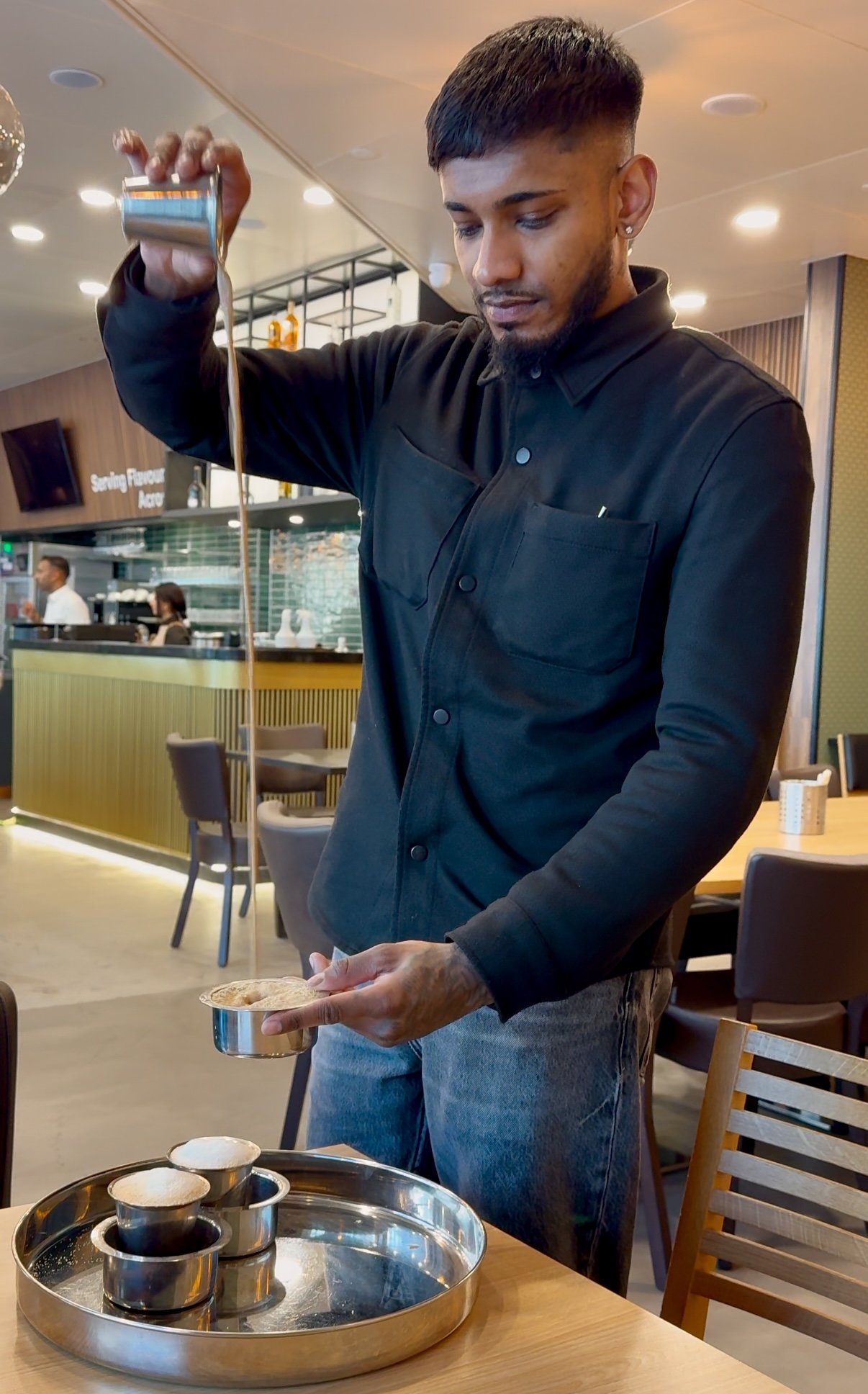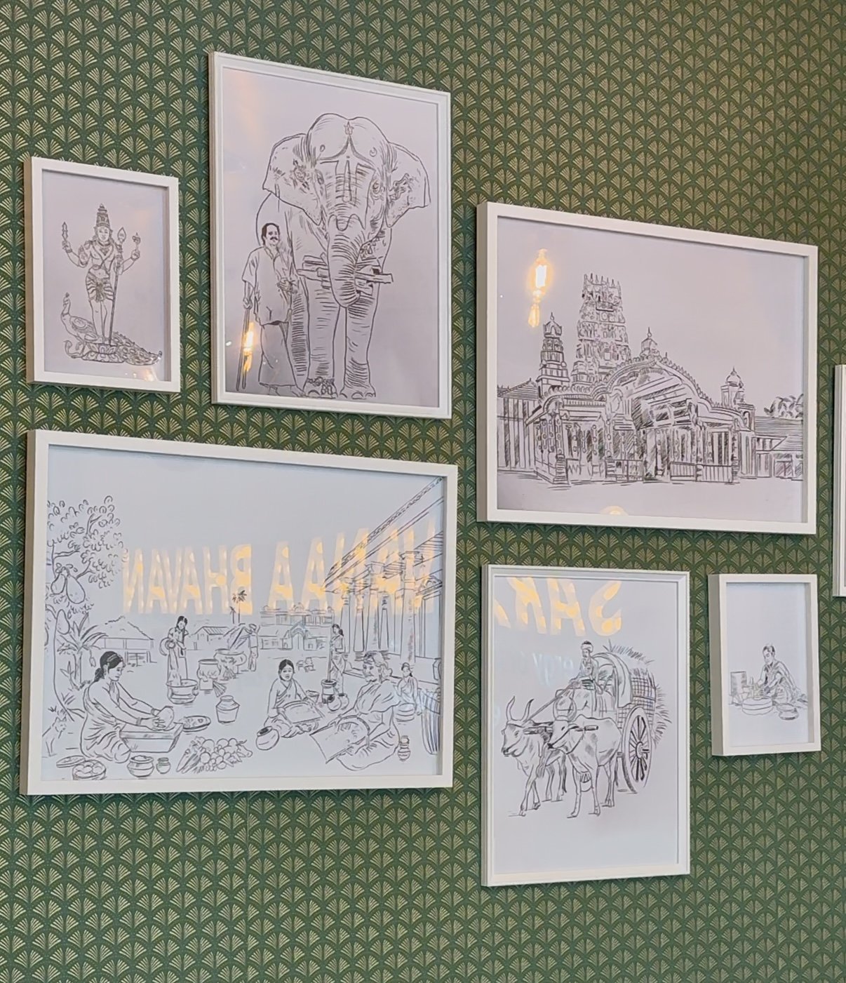 Alle Gerichte sind hausgemacht, frisch, wenn möglich mit regionalen Zutaten. Es gibt einen Tandoori Ofen und einen grossen Grill für die riesigen, feinen Dosas. Der Fokus liegt auf südindischer Küche, ausschliesslich vegetarisch und vegan.
