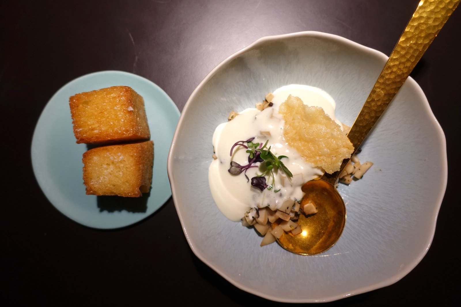 - Pilztatar, Parmesanespuma, Brioche