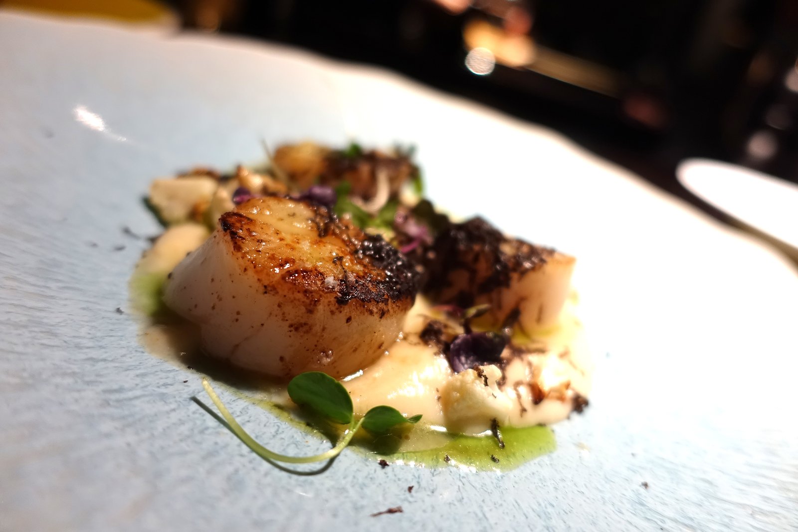 - Gebratene Jakobsmuscheln aus dem Nordwest-Pazifik, Blumenkohl, Périgord Trüffel