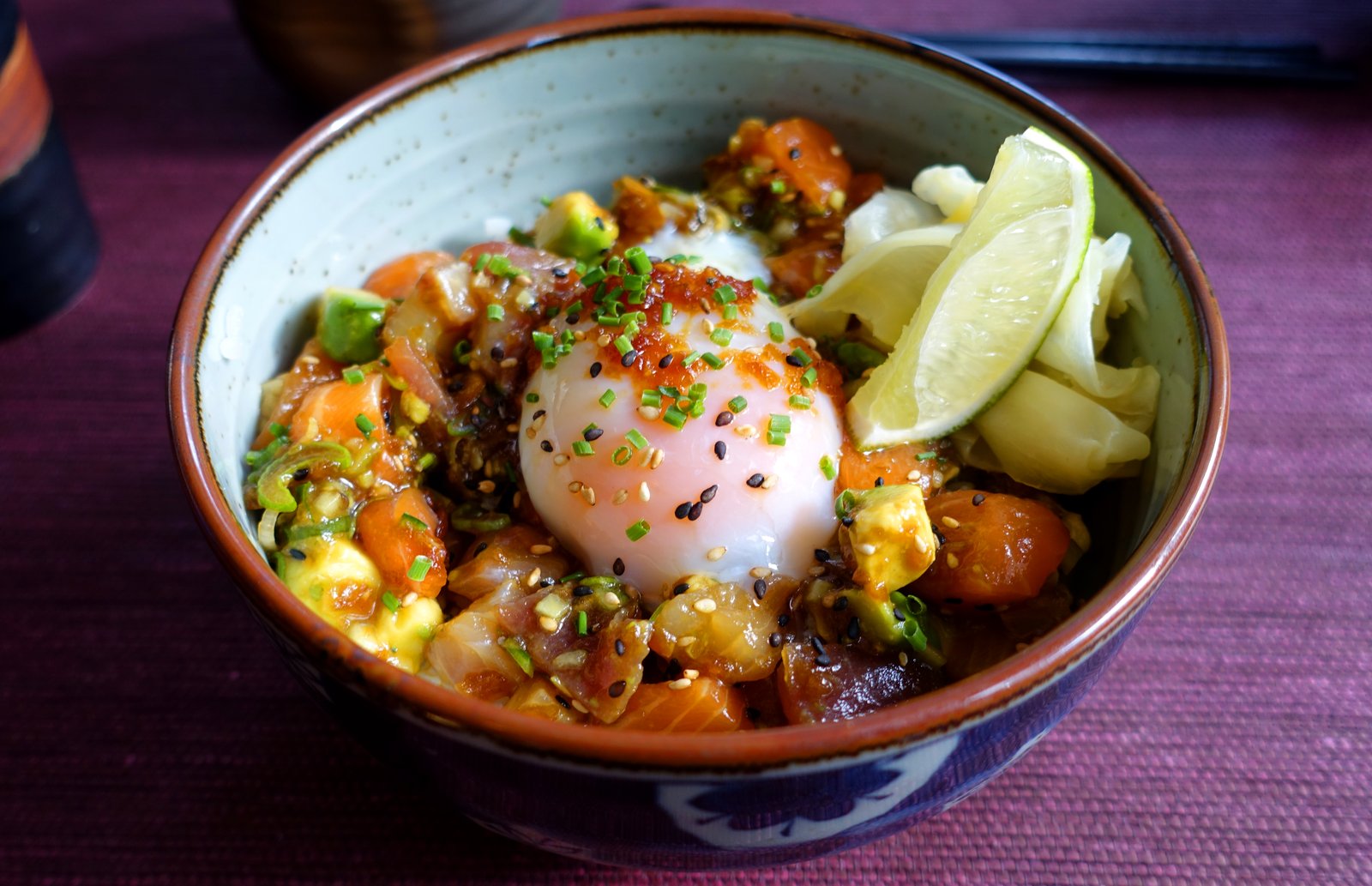 Mein Tipp: Poké Bowl mit Lachs und Tuna und Onsen-Ei