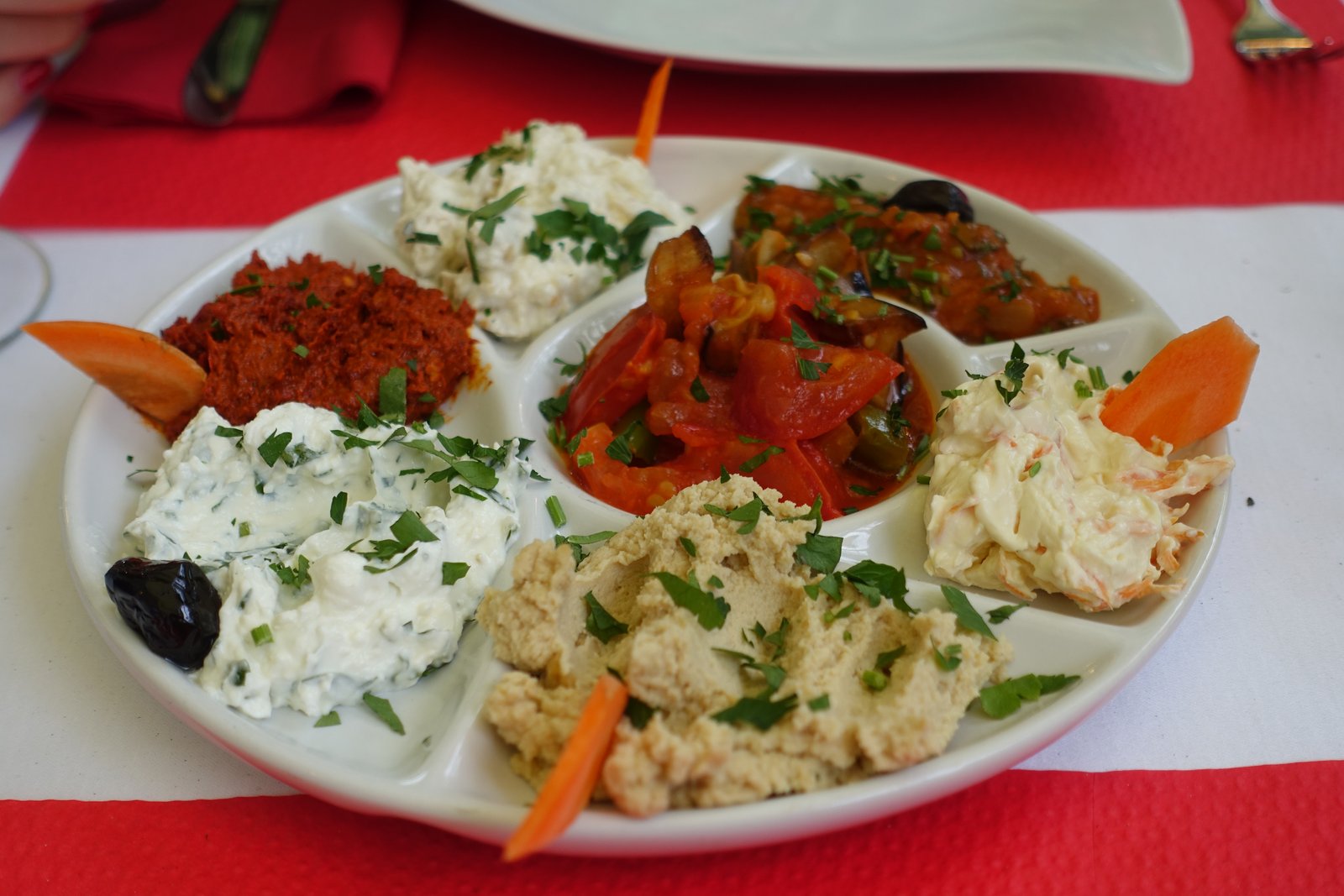 My tip: Mixed vegetarian starter plate with oven-fresh pide and Künefe as dessert