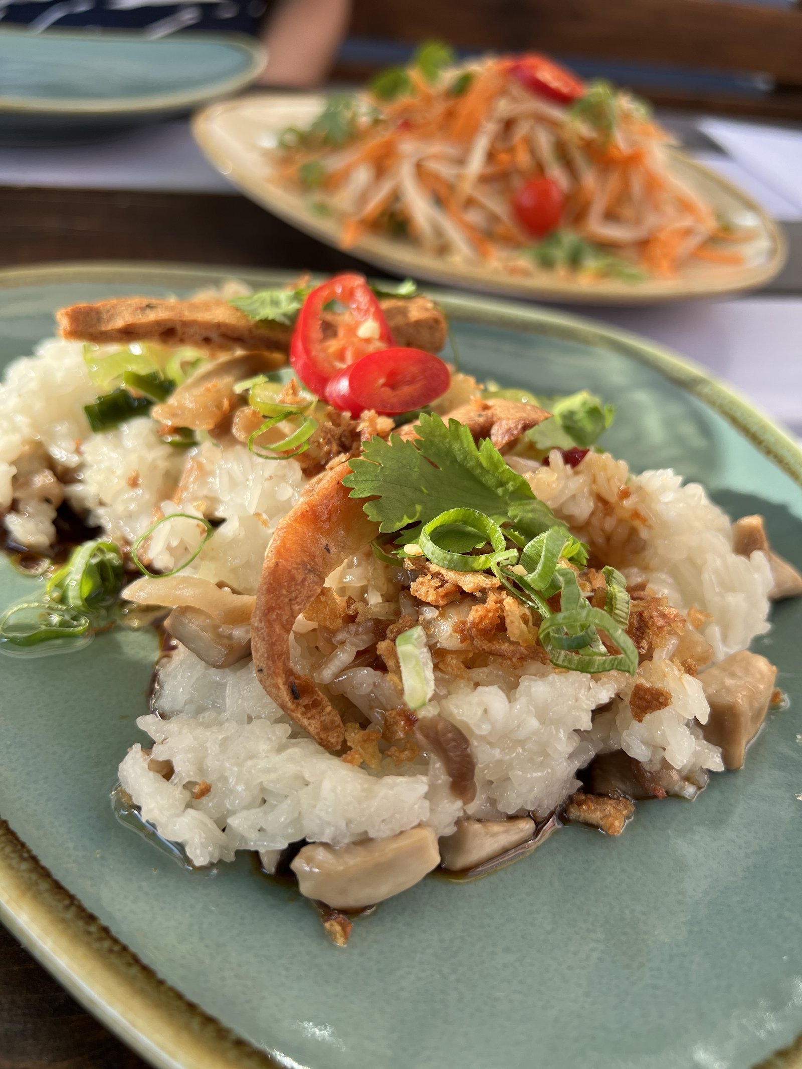 Savory Sticky Rice, vegan Saussage & Mushrooms