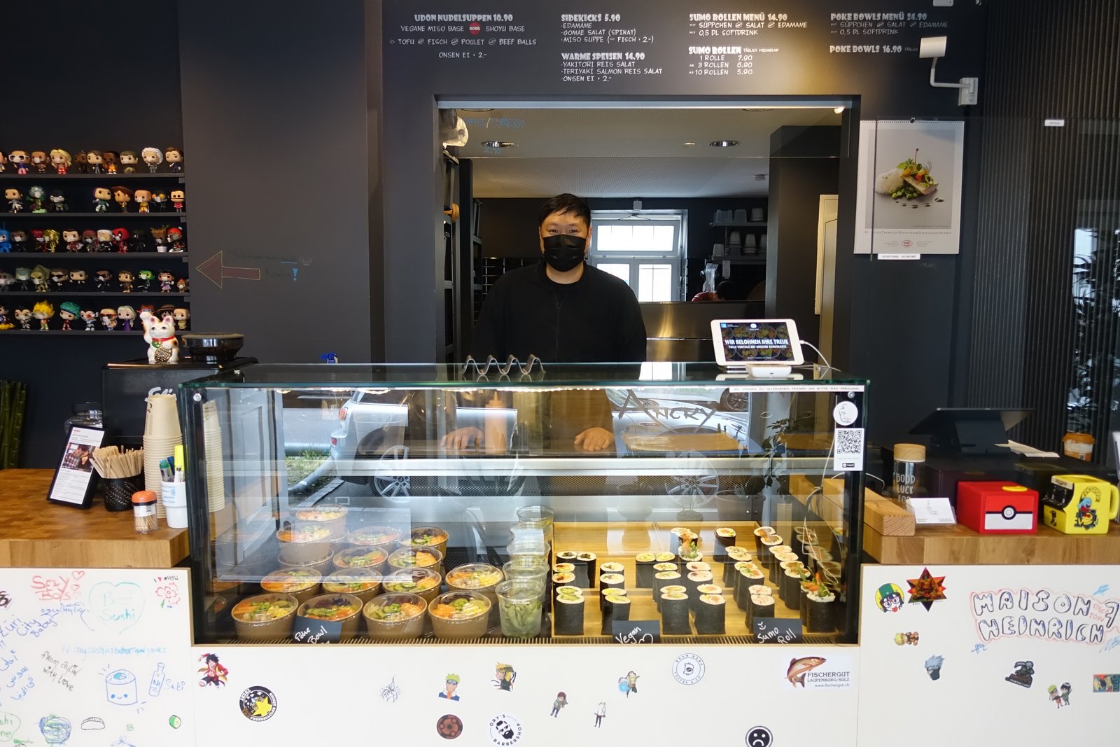 Take-away Angry Sumo offers a great selection of sushi rolls, bowls, udon noodle soups and momos. There are also a few seats on site. Long, the owner, is originally from Berlin and for him it is important to offer high quality food at affordable prices. Top!