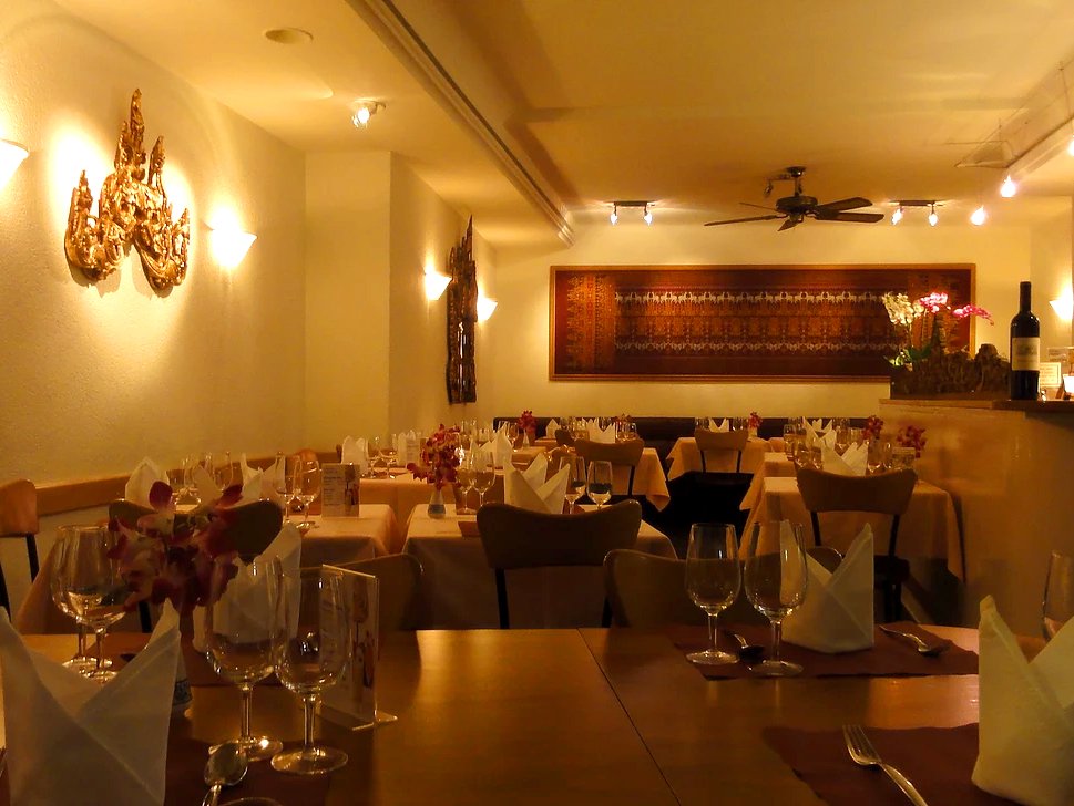 Ban Song Thai creates Thai dishes of high quality without glutamate or aromat. The meat comes from organic farms. A list of producers is available in the restaurant. The lunch buffet changes daily with soup, appetizer and four main dishes, 1-2 of which are vegetarian.