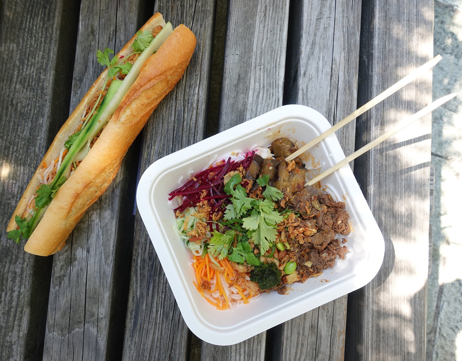 Both take-away options are light and individually fillable with beef, pork, chicken or tofu.