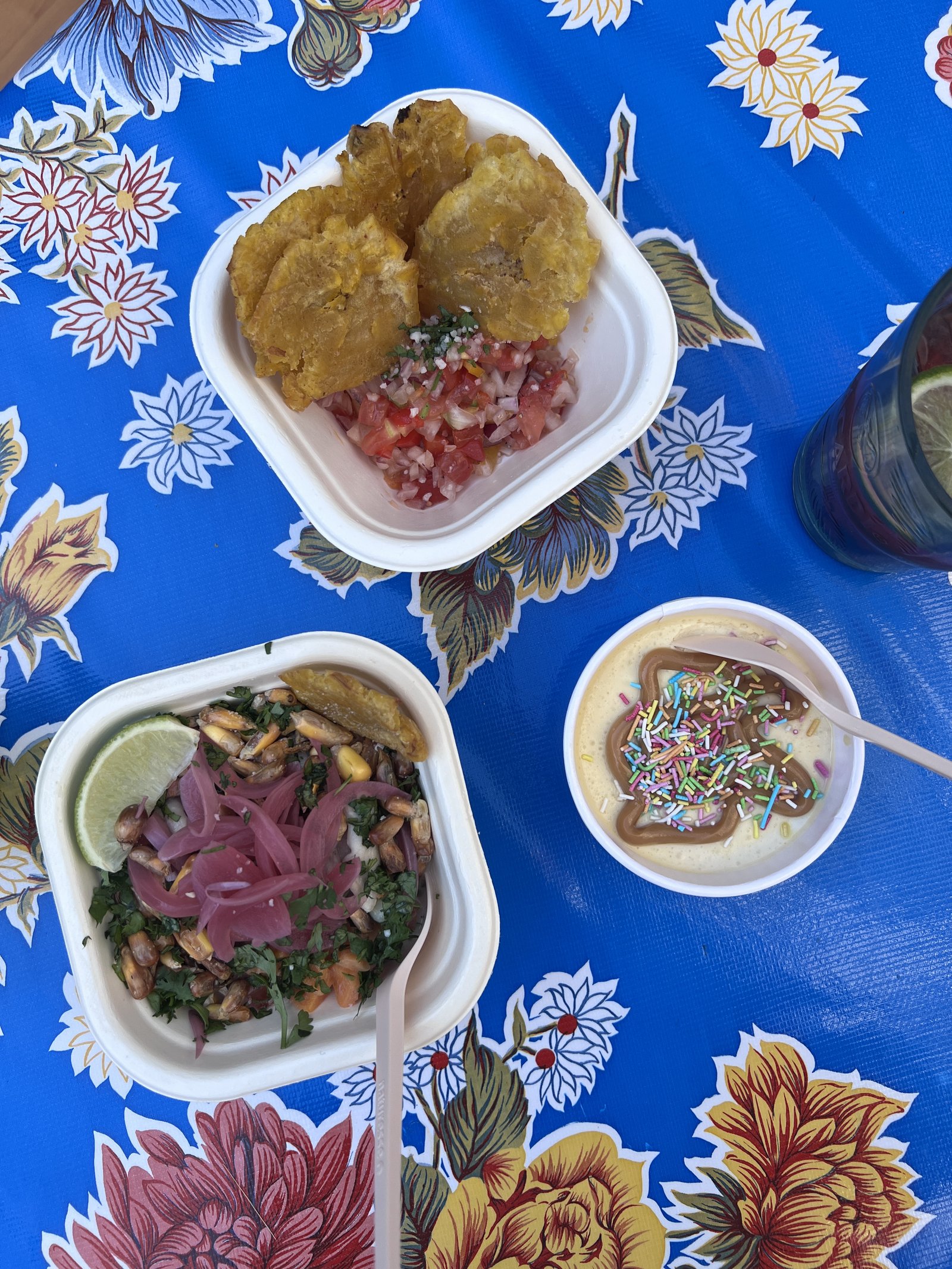 My tip: Patacones con pico de gallo, elotes, sandwich de chola, arepas I drink: Paloma