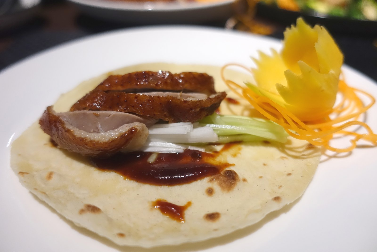- Duck Peking style with pancakes, cucumber, leek & hoisin sauce
