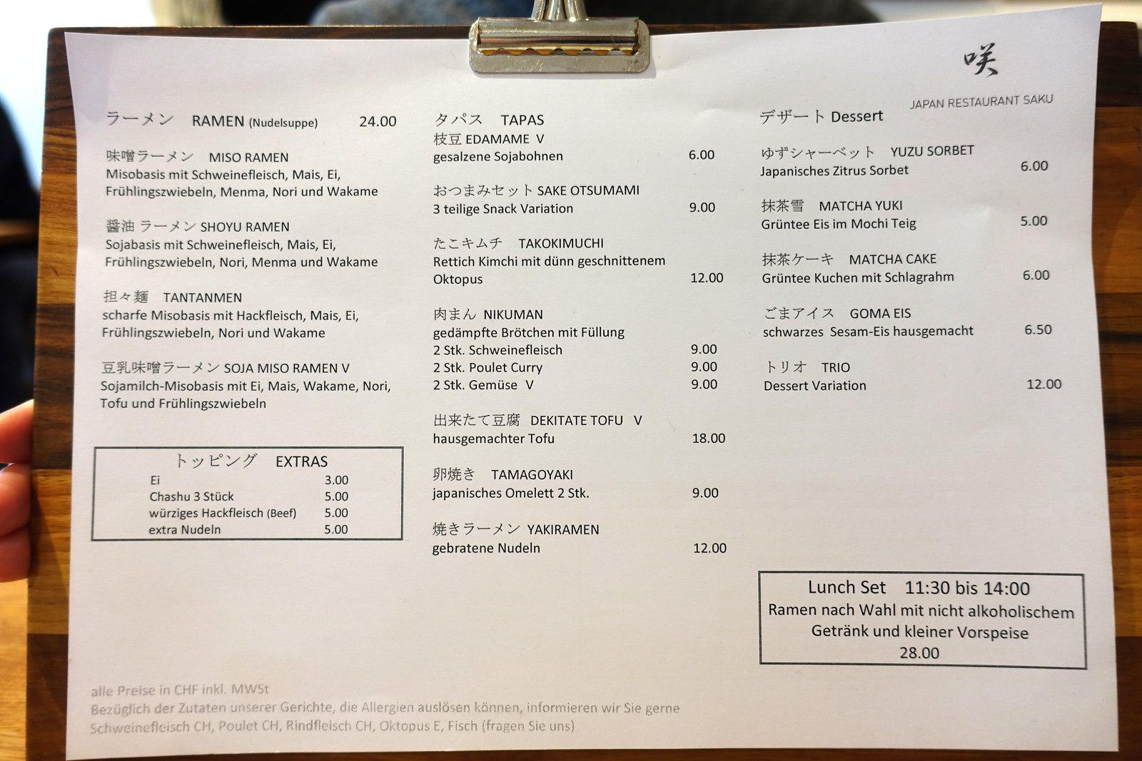 The Japanese restaurant Saku is known for its warming Ramen soups like Miso Ramen, Shoyu Ramen, Tantanmen or for vegetarian soy Miso Ramen. In addition to the noodle soups, there are various tapas and desserts to choose from. For CHF 28 you get a ramen soup, a non-alcoholic drink and a small starter. The large selection of sake is unique.