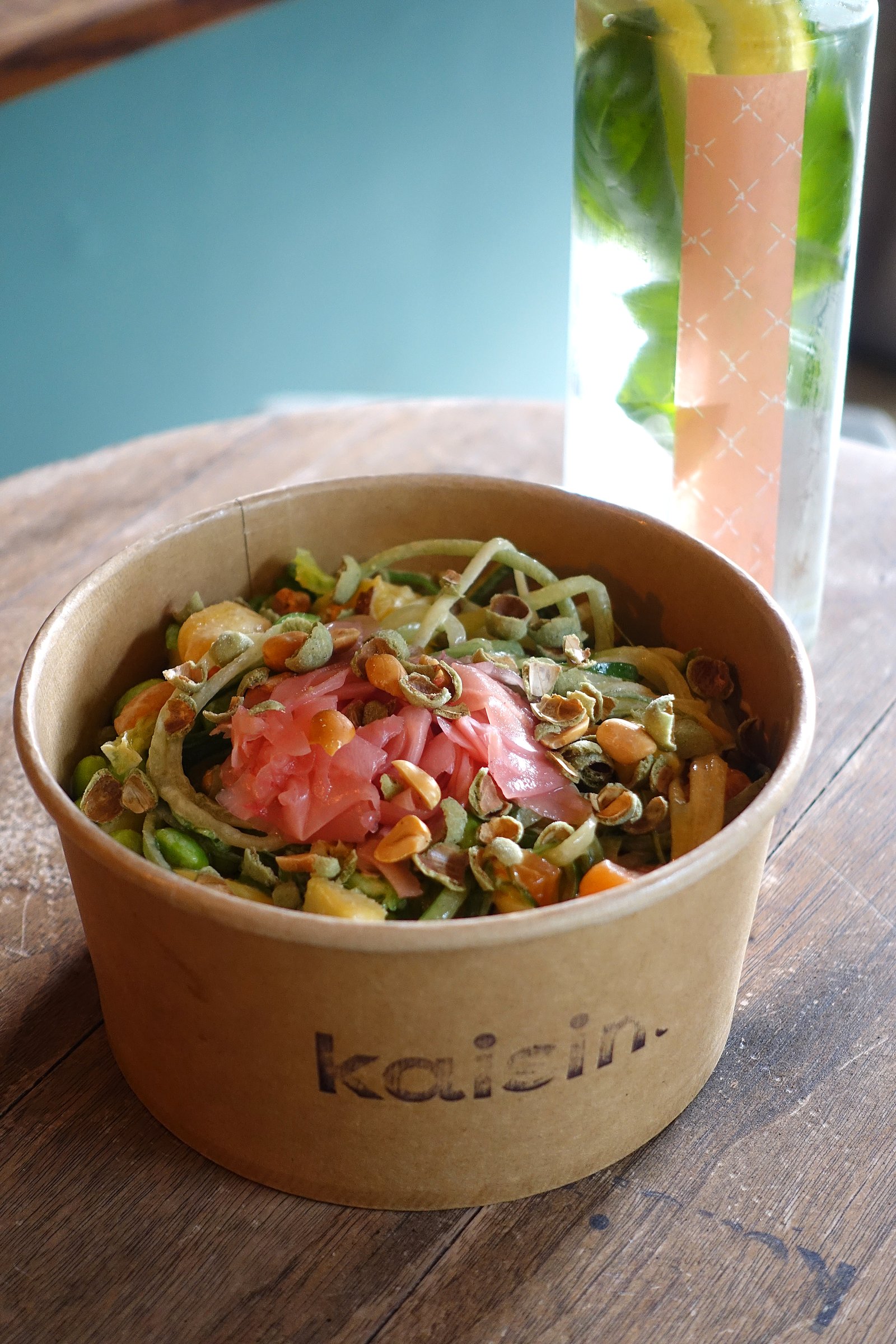 My tip: Poké Bowl with tuna > black nerone rice > seaweed salad, edamame, ginger guacamole, cucumber > wasabi lime > pomegrate, ginger & homemade raspberry ice tea