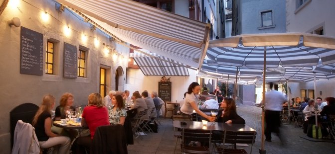 Mère Catherine offers seasonal and classic Provençal dishes. The rich selection of fish and lamb carré are very popular. The restaurant is located very idyllically in the Nägelihof - in summer you can stay here for hours. At noon there are three different lunch menus with fish, meat or vegetarian, optionally with soup or salad from the buffet.