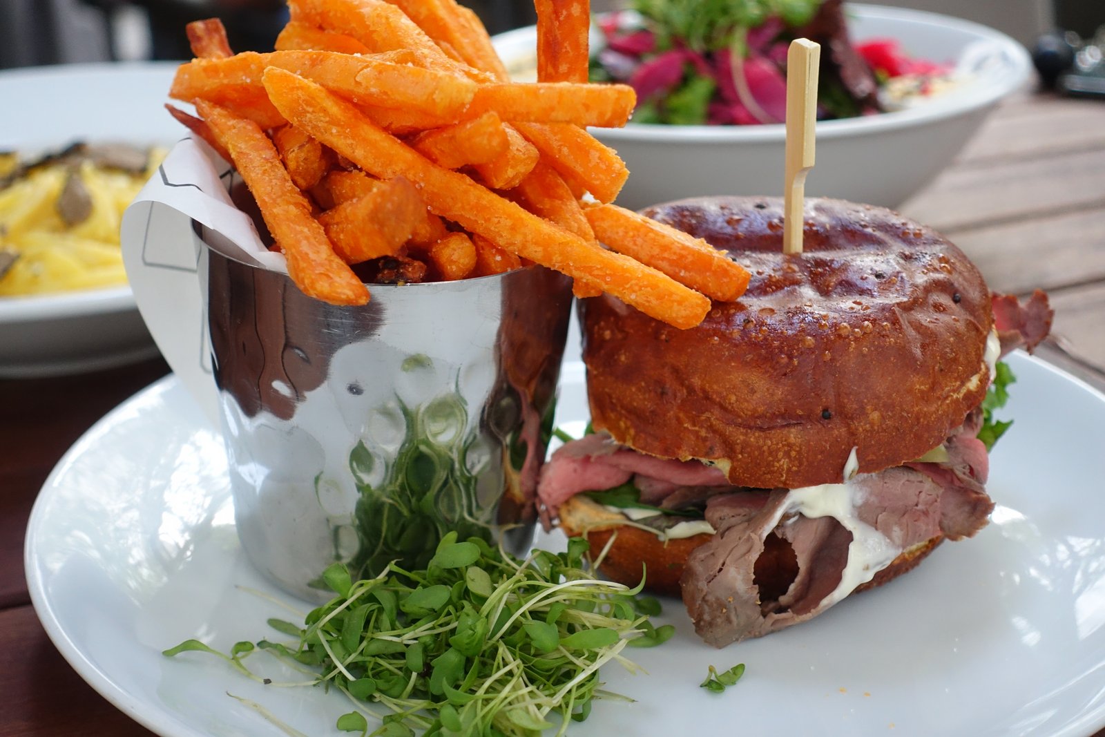My Tip: Puro Burger with Roast Beef in Crispy Lye Bun with Sweet Potatoe Fries