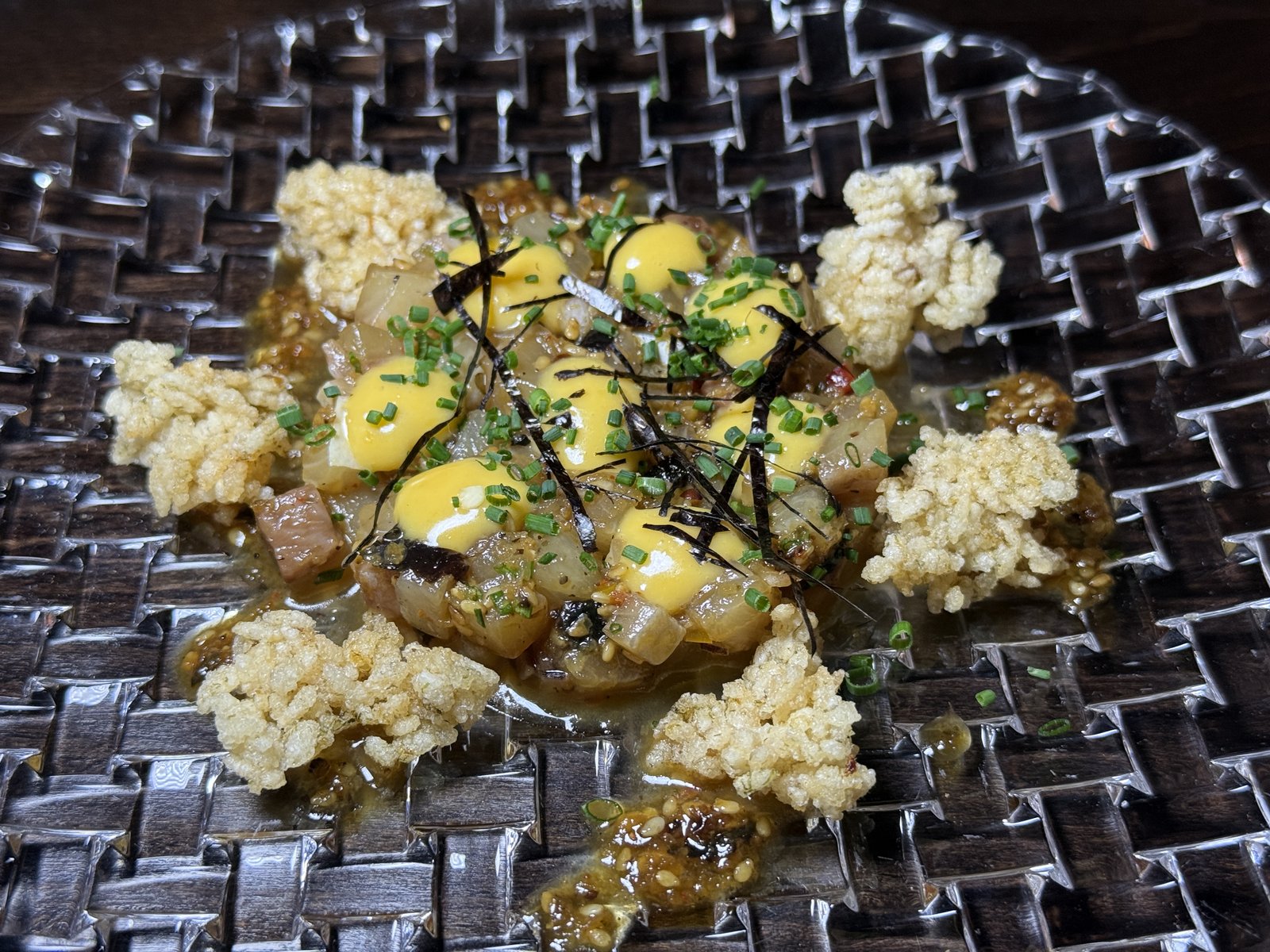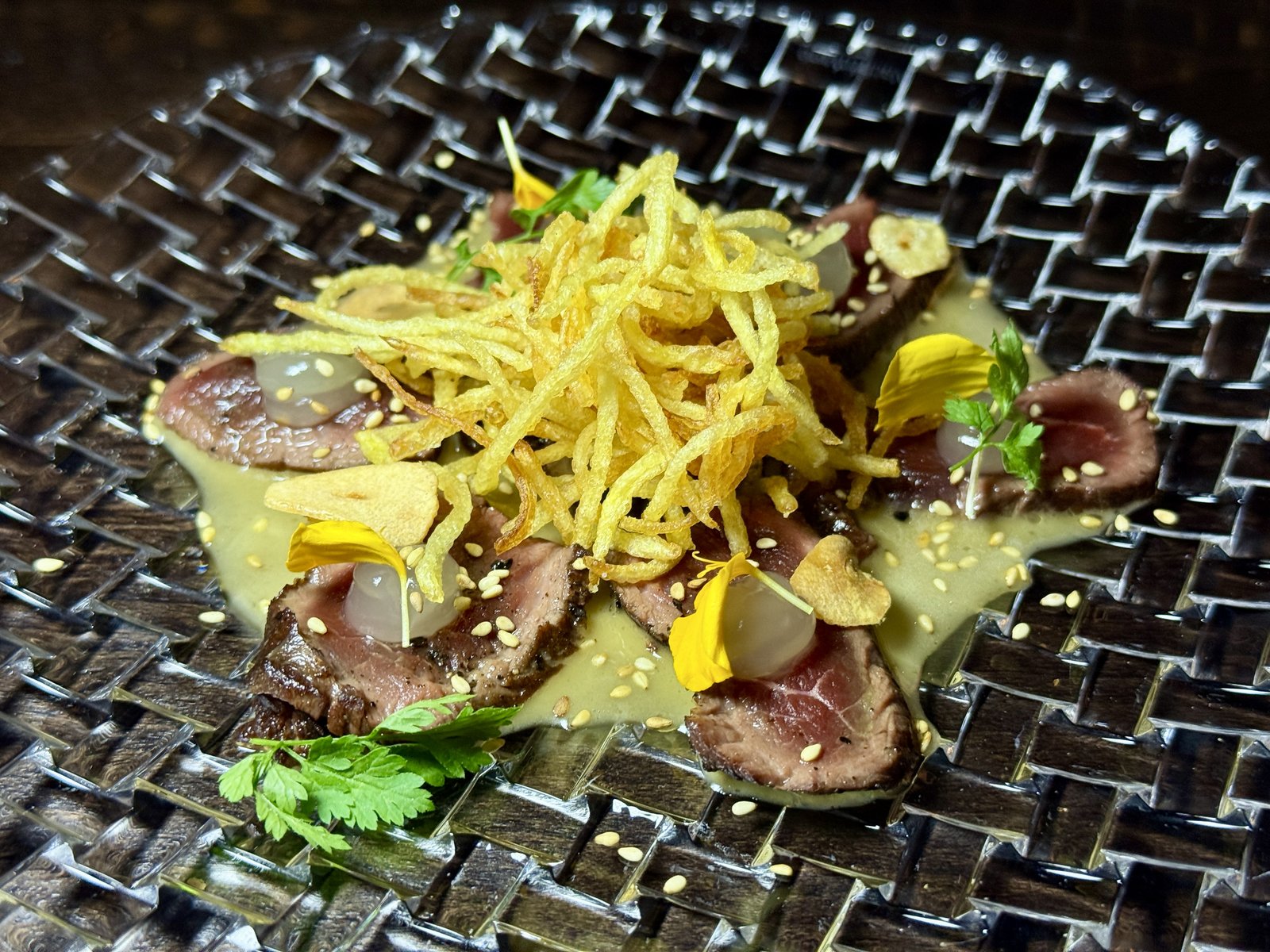 The cuisine at Ustaria is diverse and of high quality. Chef Robert serves dishes such as venison tataki with yuzu gel, roasted garlic, and crispy potato straws. A house classic is the tender braised pork belly in an umami-spicy sauce with a subtle kick of heat.