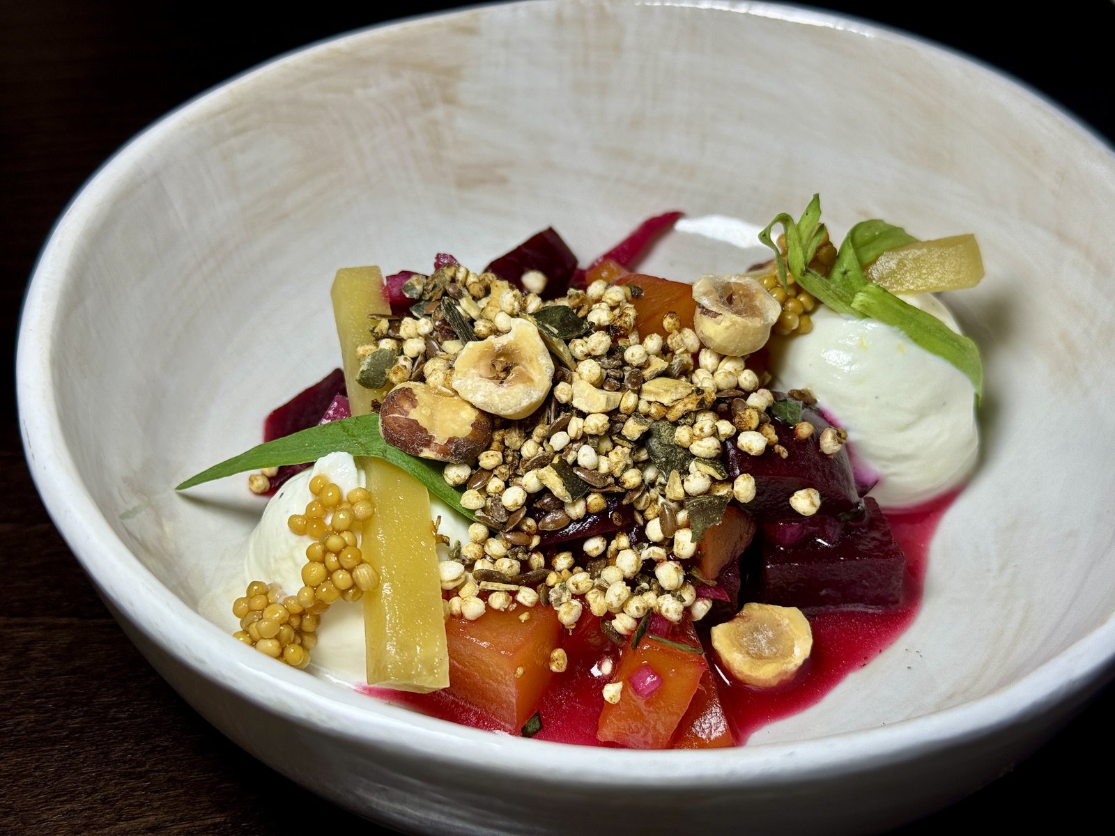 Burrata is also on the menu, but here it is served with radicchio tardivo, dried figs, pine nuts, and flat-leaf parsley. The menu, available from 5 p.m., offers seasonal and fresh cuisine, which Robert and his team prepare with precision, without resorting to overly elaborate presentation.