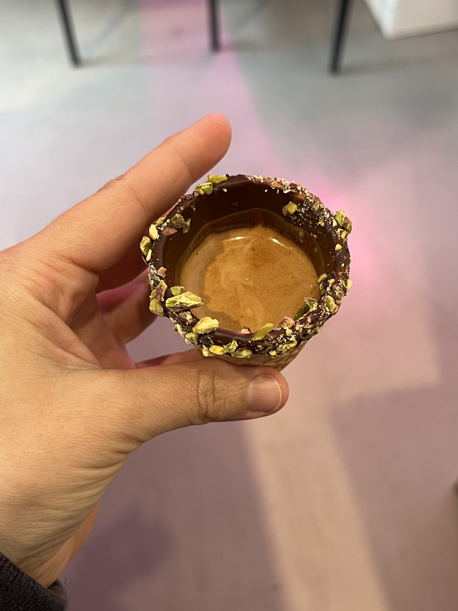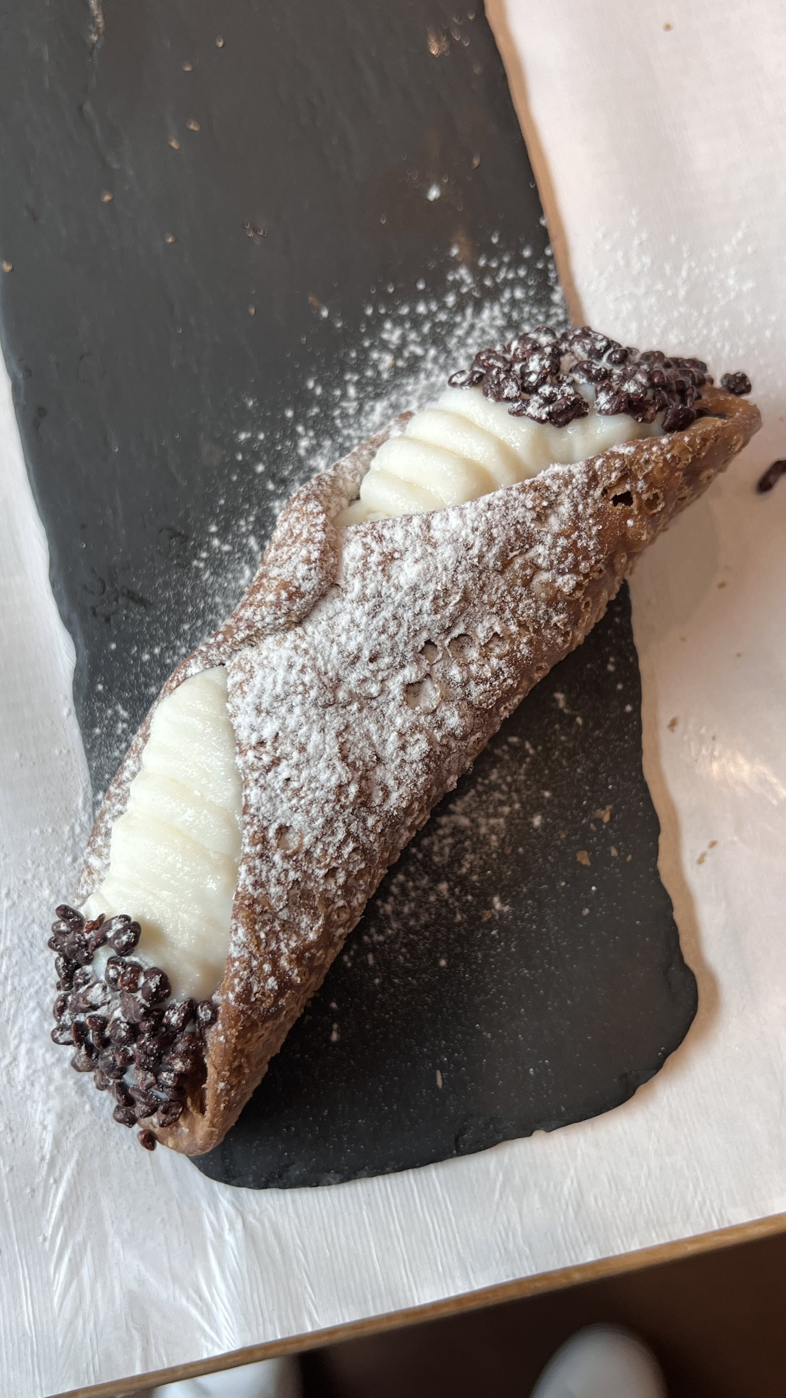 The display case offers a selection of small cakes with fruit, lime and baba rhum. Cannoli are also freshly filled with ricotta cream. A highlight is the homemade tiramisu. It goes perfectly with an espresso, from the Chocup if you wish. The waffle cup with chocolate can of course be eaten afterwards.