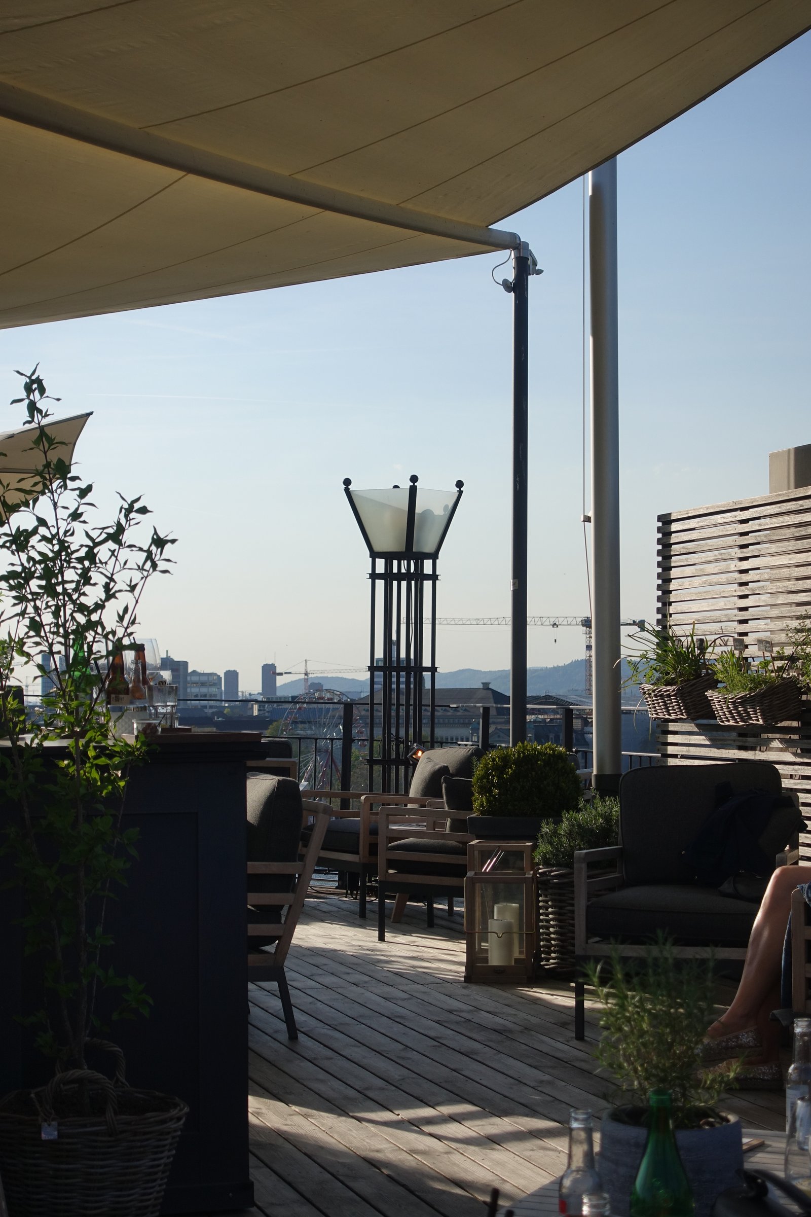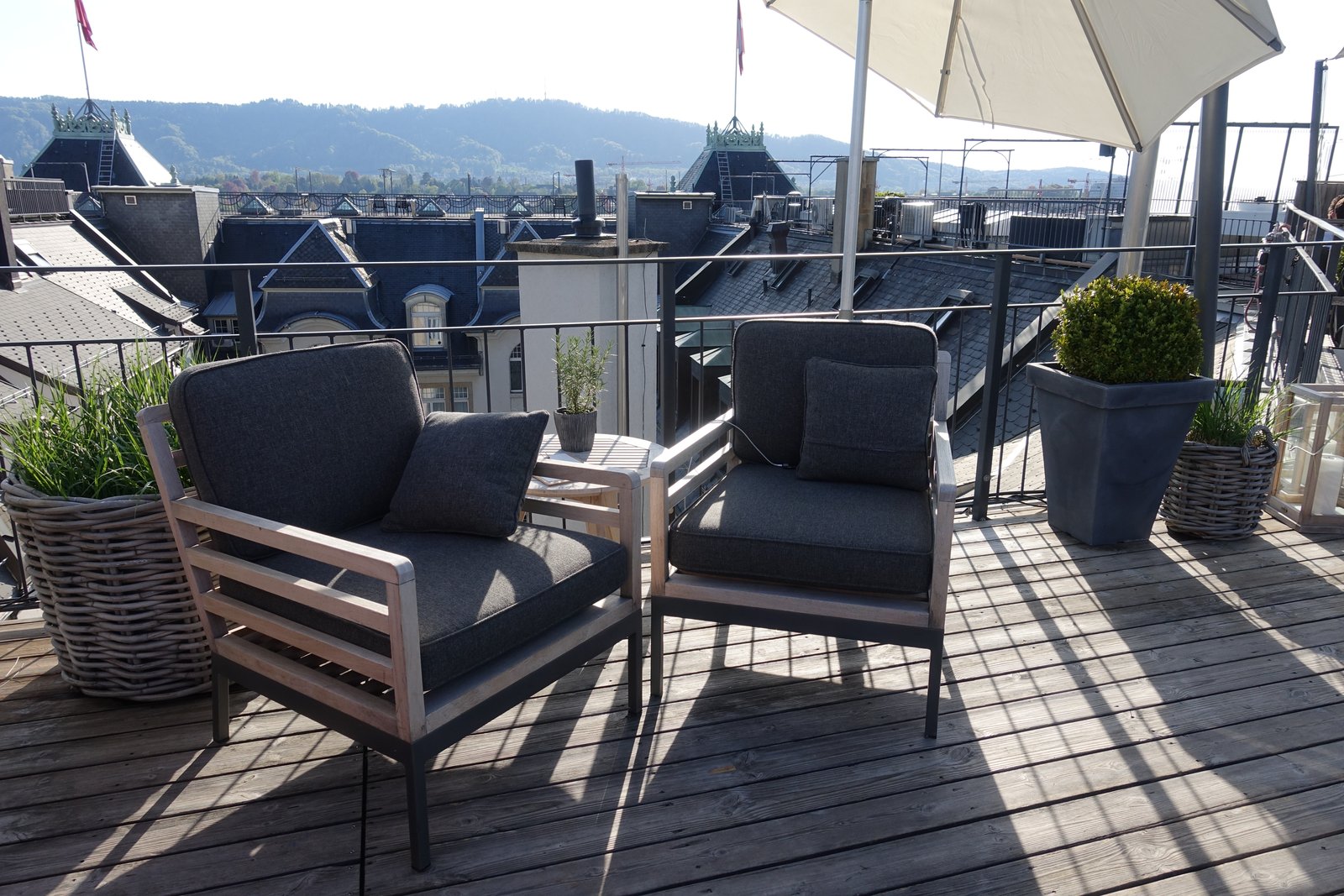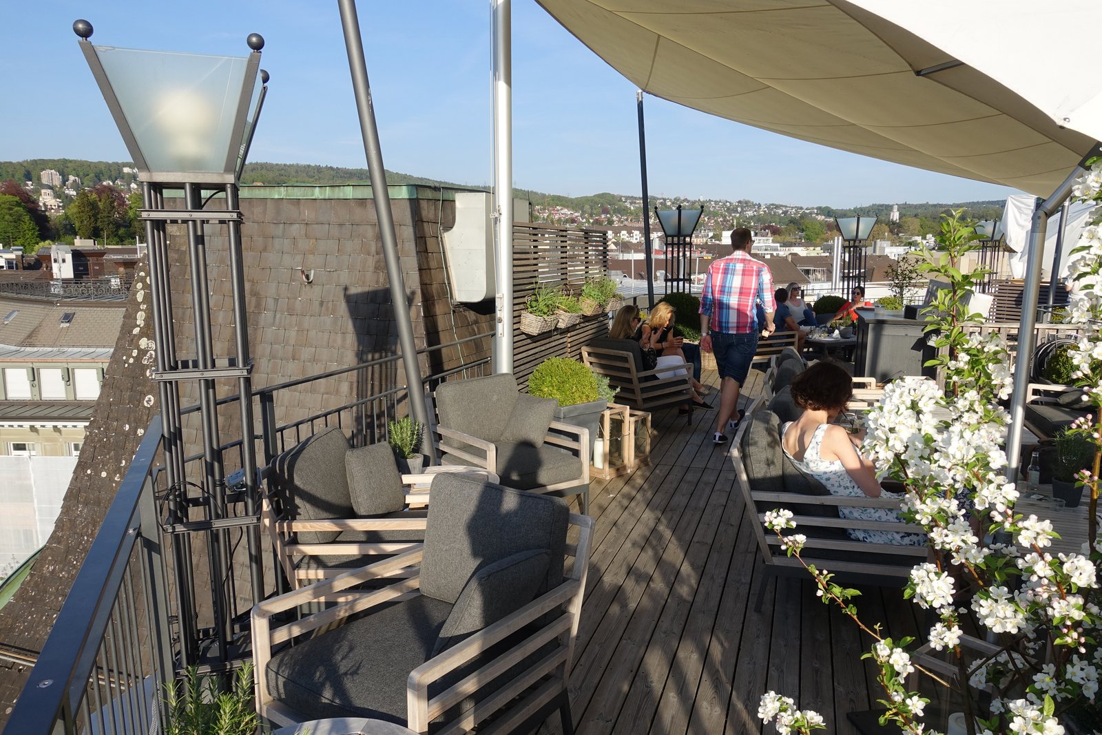The roof terrace of the Hotel Ambassador à l'Opéra offers a great view over the roofs of Zurich including lake view, fine drinks and aperitifs with regional products. Open in good weather. Reservations are recommended for 2 hours. Bookable for events.