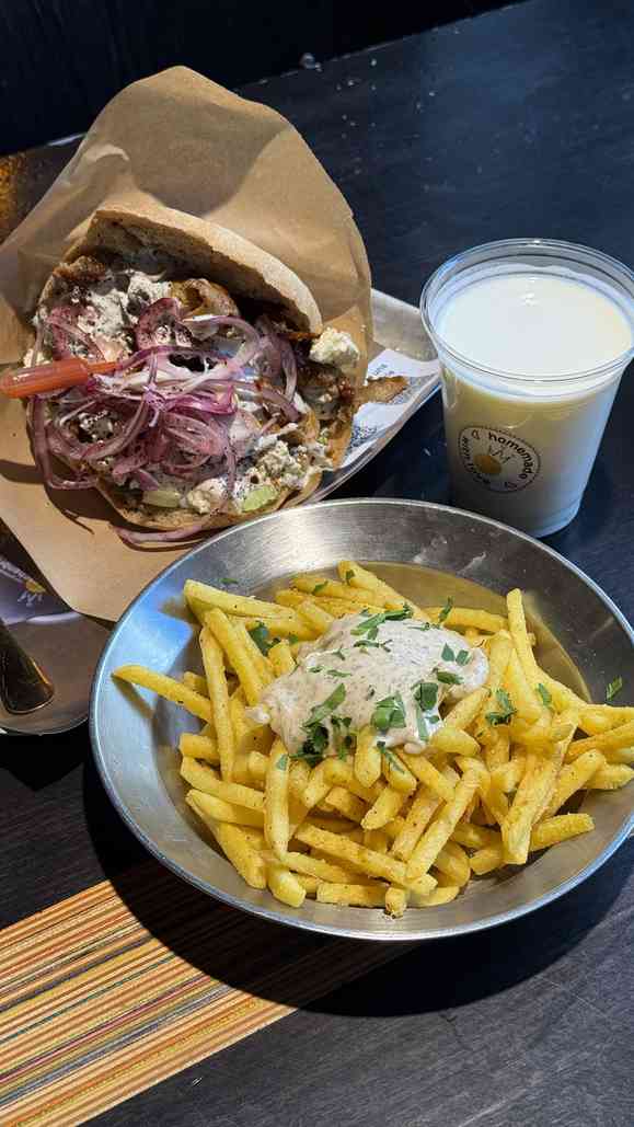 If it’s your first time here, be sure to try the Berlin Style with sourdough bread. The combination of juicy meat, fresh vegetables, yogurt sauce, and feta is a true highlight. Pair it with a glass of homemade Ayran – perfectly refreshing and completing the taste experience.