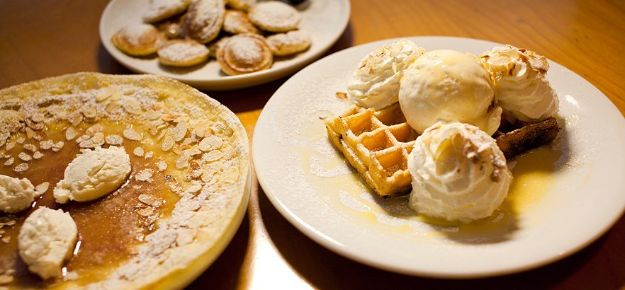 Luckily, it's a small café with a bar and famous for its delicious pancakes and waffles with various toppings. There is also a large breakfast selection, and guests are spoiled with brunch on Saturdays and Sundays from 9 am to 5 pm. A changing lunch menu is served from Monday to Friday.