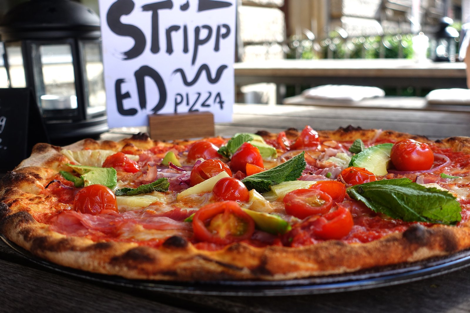 Das Stripped Pizza verköstigt seine Gäste 7 Tage die Woche mit Kaffee, kalt gepressten Säften, leckeren Salaten und natürlich, wer hätte es gedacht mit Pizza. Diese gibt es in aussergewöhnlichen Varianten und mit Mehrkorn- oder Vollkorn Leinsamen Teig. Auf Wunsch kann man seine eigene Pizza oder Salat selbst zusammenstellen und diese auch zuhause geniessen.