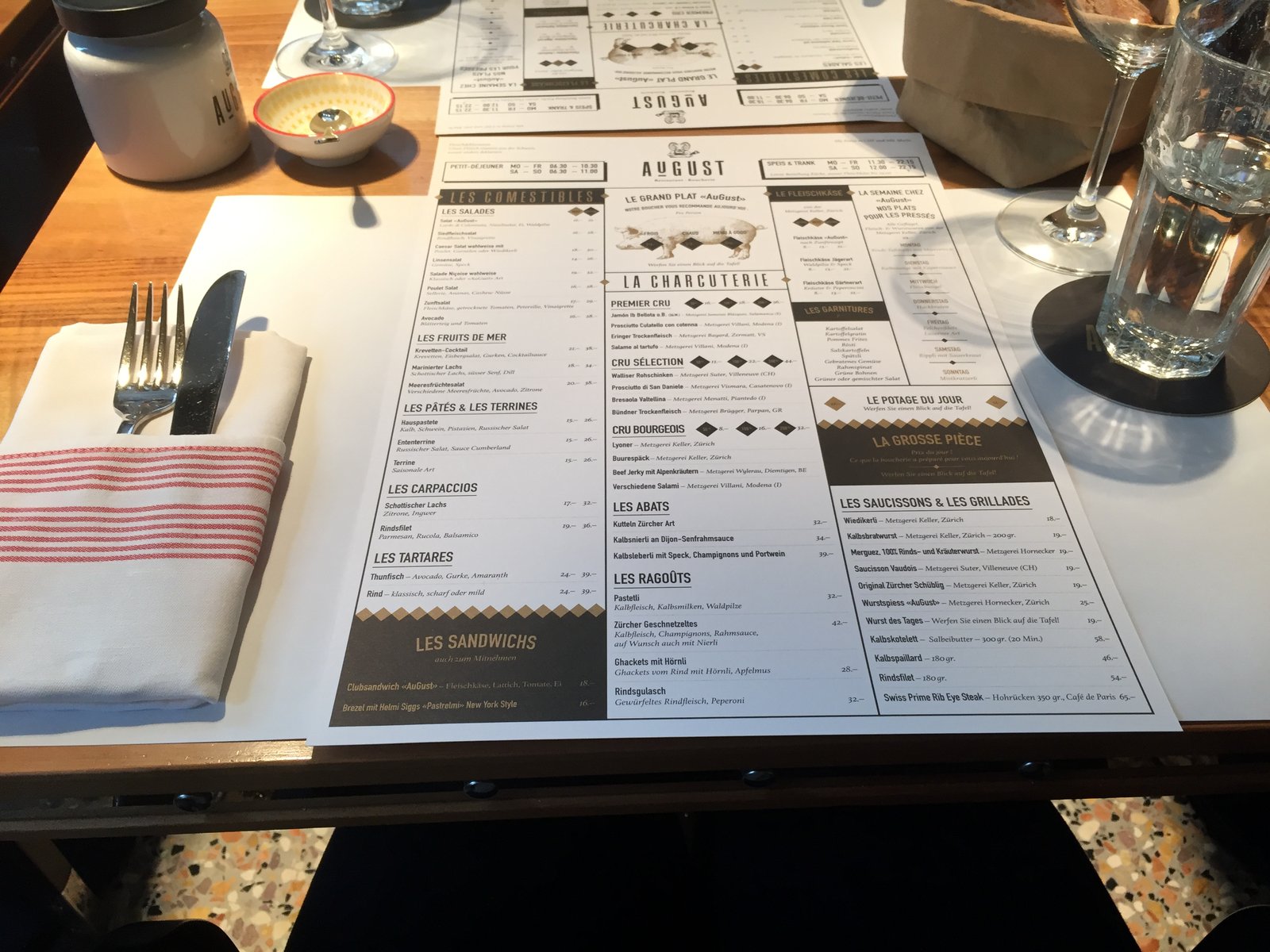 AuGust is probably the heaven on earth for meat and sausage lovers. The restaurant has its home in the over 700-year-old building of the Widder Hotel, with a show kitchen and an expansive meat display case. Hearty meat specialities are served in a modern brasserie atmosphere.
