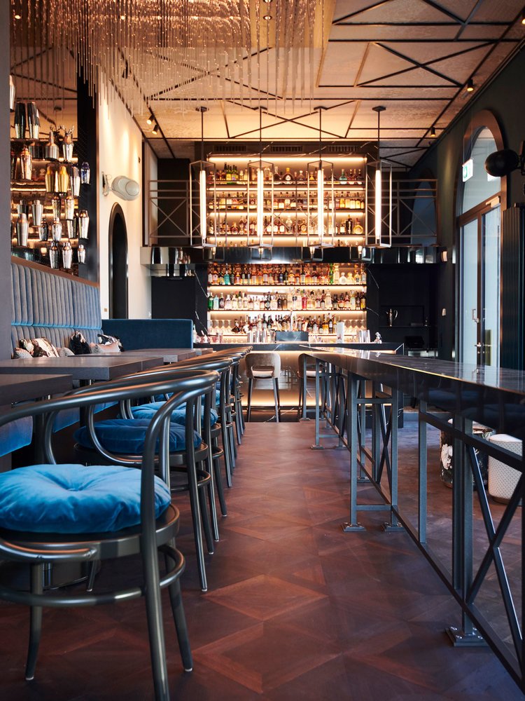 A real gem over two floors with noble design. In the bar by the water you can drink coffee and cocktails. Bar chef Dirk Hany and his team are happy to spoil their guests with exceptional creations. In the evening there are small aperitif dishes such as cheese, salami, olives, aubergine mousse, guacamole or hand-cut beef tartare with fresh organic bread. If you reserve for at least 10 people, you can take a seat in the small Séprarée, which can be separated by a sliding door.