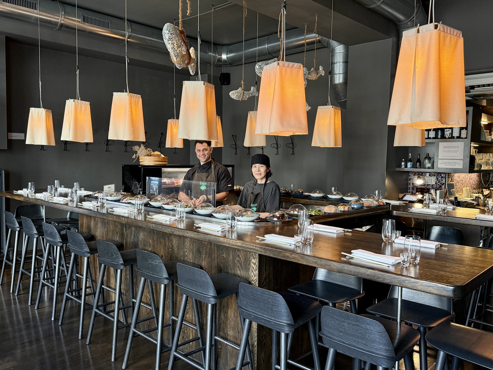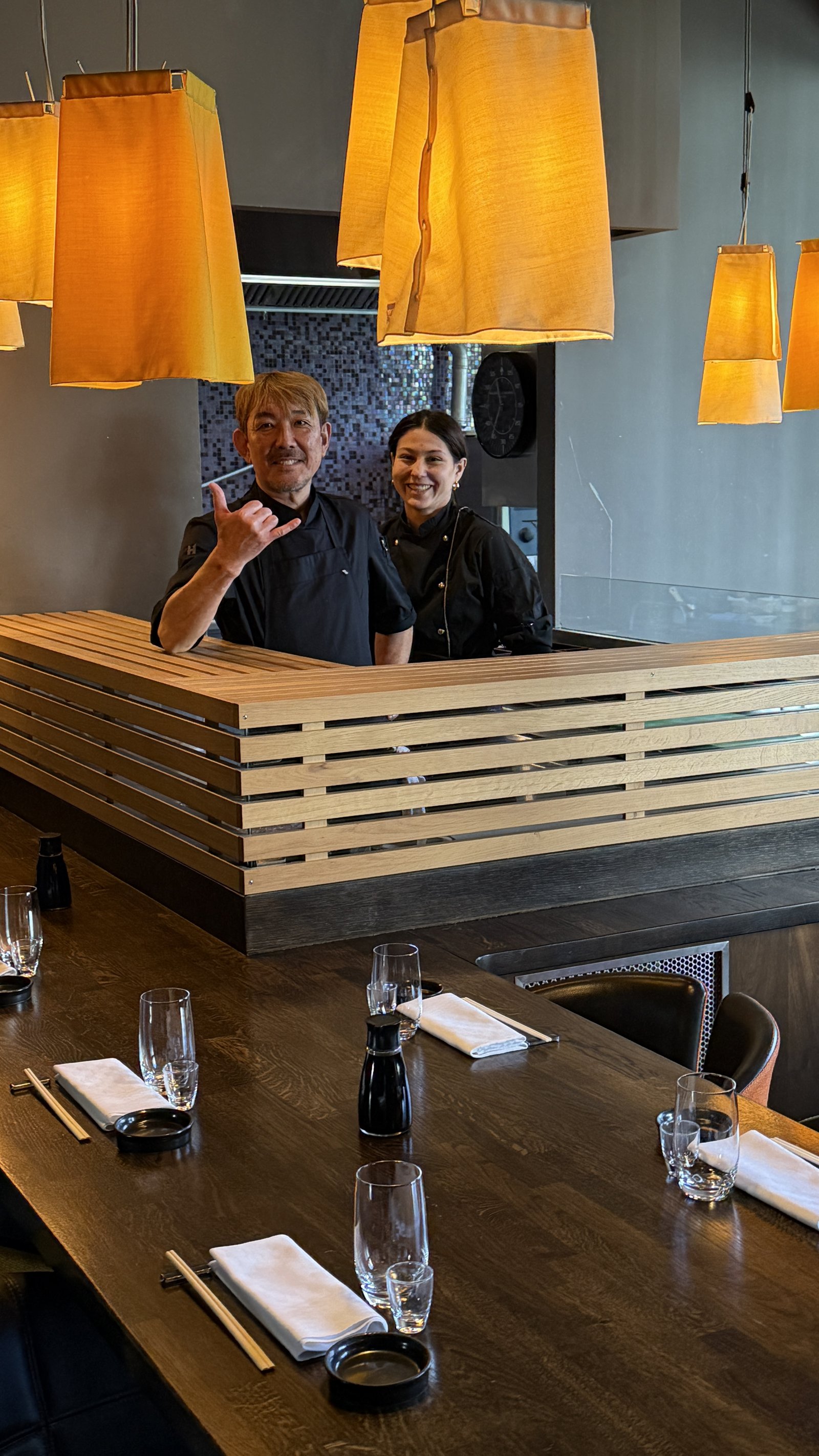 The front part of the restaurant is a sushi bar with a silent conveyor belt where you can watch two Japanese chefs preparing the delicacies. The authentically furnished à la carte restaurantis located at the back and is the realm of chef Ken and his team.