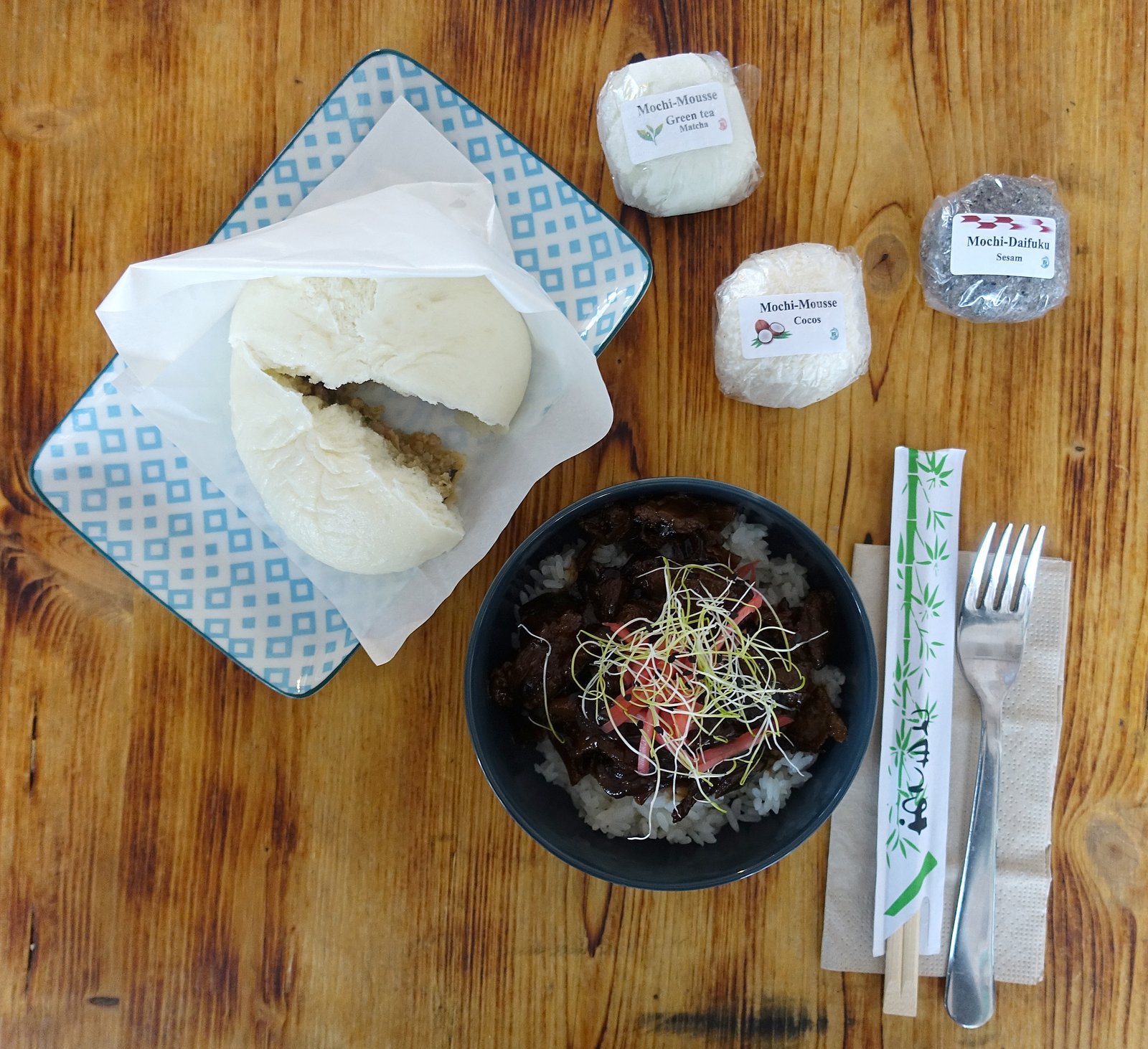 Lena, Manu and Ronja from KUMO6 are real powerwomen and have revived an old sea freight container at Bucheggplatz with the help of WeCanMakeIt. In addition to drinks, coffee and teas, there are also fine Japanese dishes such as gyudon (beef) with rice, sandwiches and soups for lunch. Vegetarians also have a choice of alternatives. Because the Kumo6 is very much about Japan (kumo means spider and is inspired by the street layout at Bucheggplatz), it is not surprising that homemade buns (Nikuwan/Currywan and Vegiwan) and sweet Mochi in various varieties are also on the menu. Vegetables, fruits and meat are sourced from the surrounding area whenever possible and there are discounts for customers who drop in with their own coffee mugs or returnable crockery.