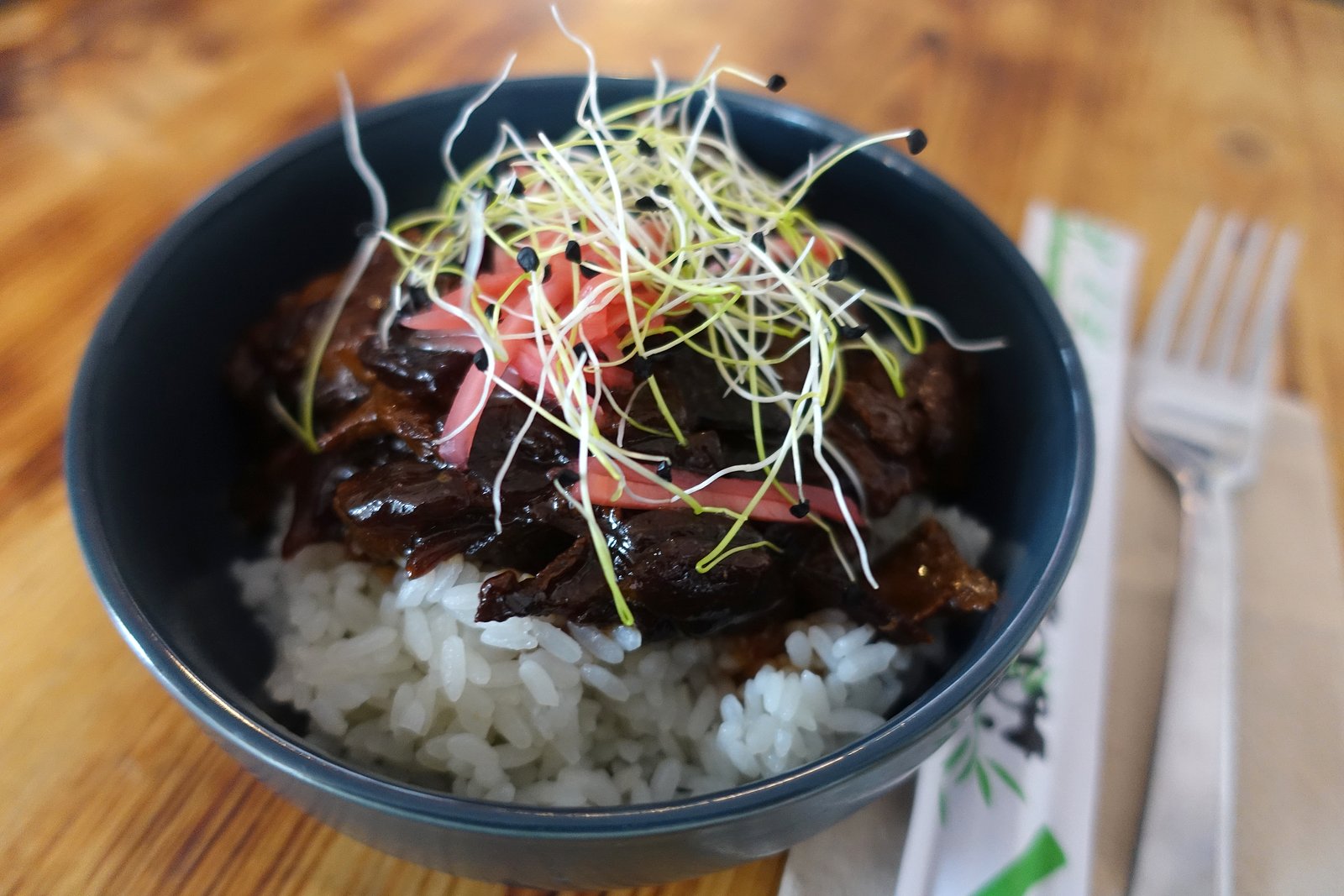 My tip:Gyudon with rice, Nikuwan, coconut Mochi