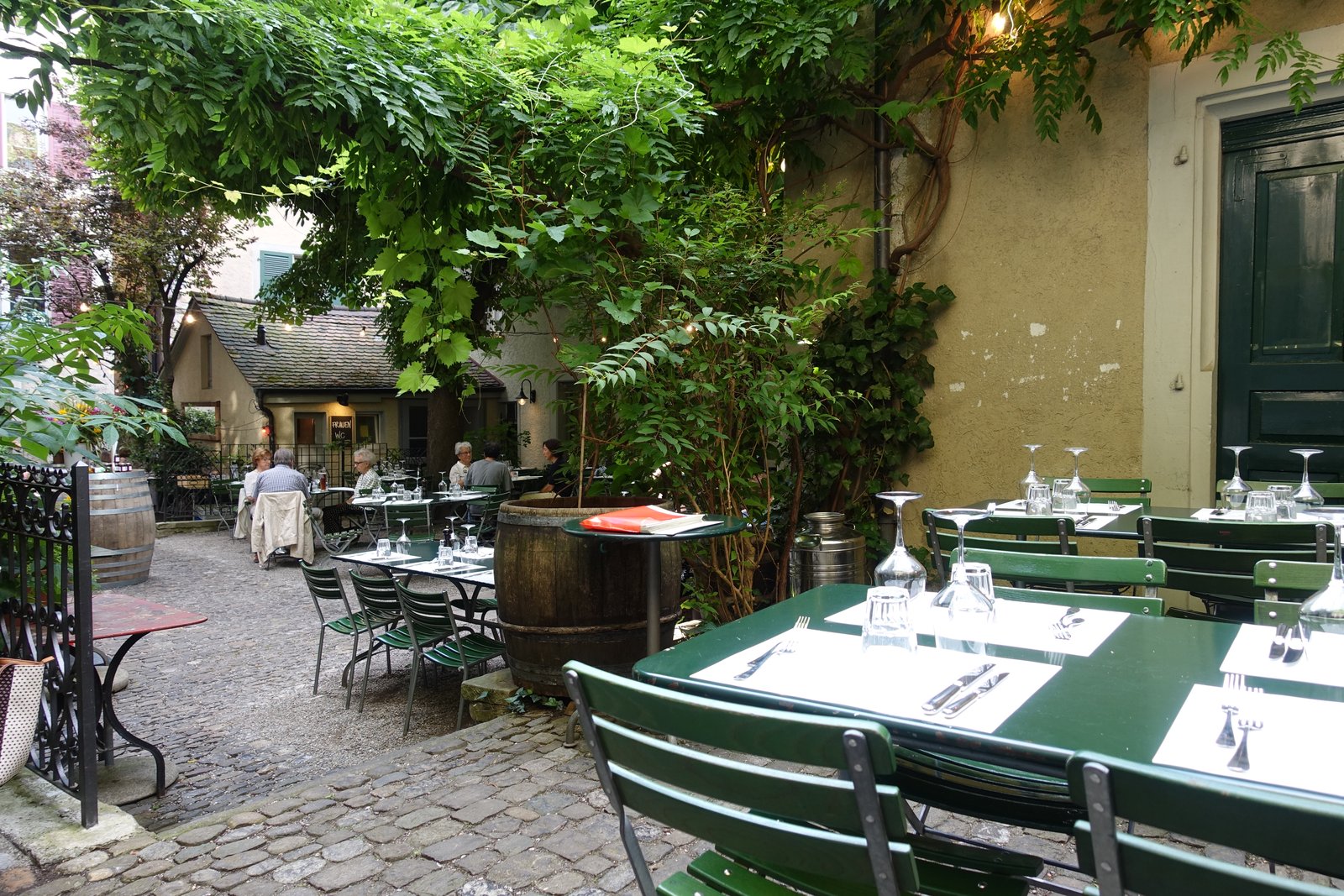 The Neumarkt Restaurant is characterised by its large, secluded garden. In the middle of the Niederdorf you sit surrounded by foliage in the winding garden and can be spoiled culinarily. Reservations are not always easy, as the restaurant is very popular and is also suitable for larger groups and celebrations. The dishes are market-fresh with that certain something, Swiss specialities are finely interpreted. The wine list contains many local producers.
