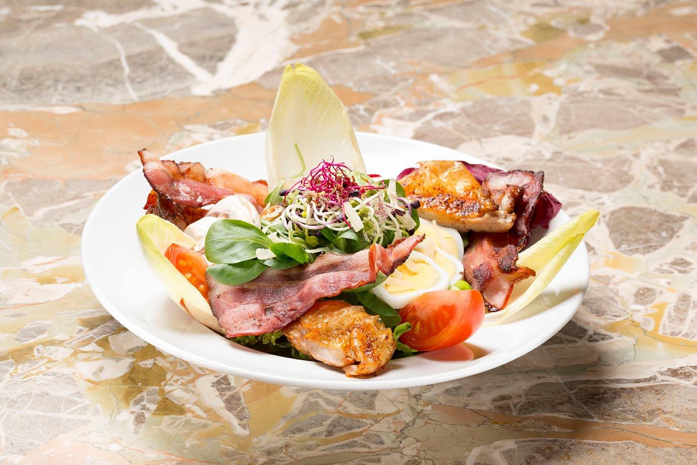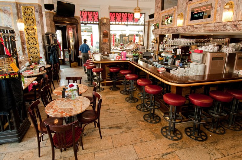 The ODEON has been around in Zurich for over 100 years and combines Art Nouveau with Viennese coffee house culture. Celebrities have been in and out of the ODEON. I like to sit outside in summer and watch people strolling by. Salads, various appetizers, flame cakes, burgers and the classics such as the Tatar, also available as a vegi variant with avocado. The restaurant also offers a rich breakfast menu.