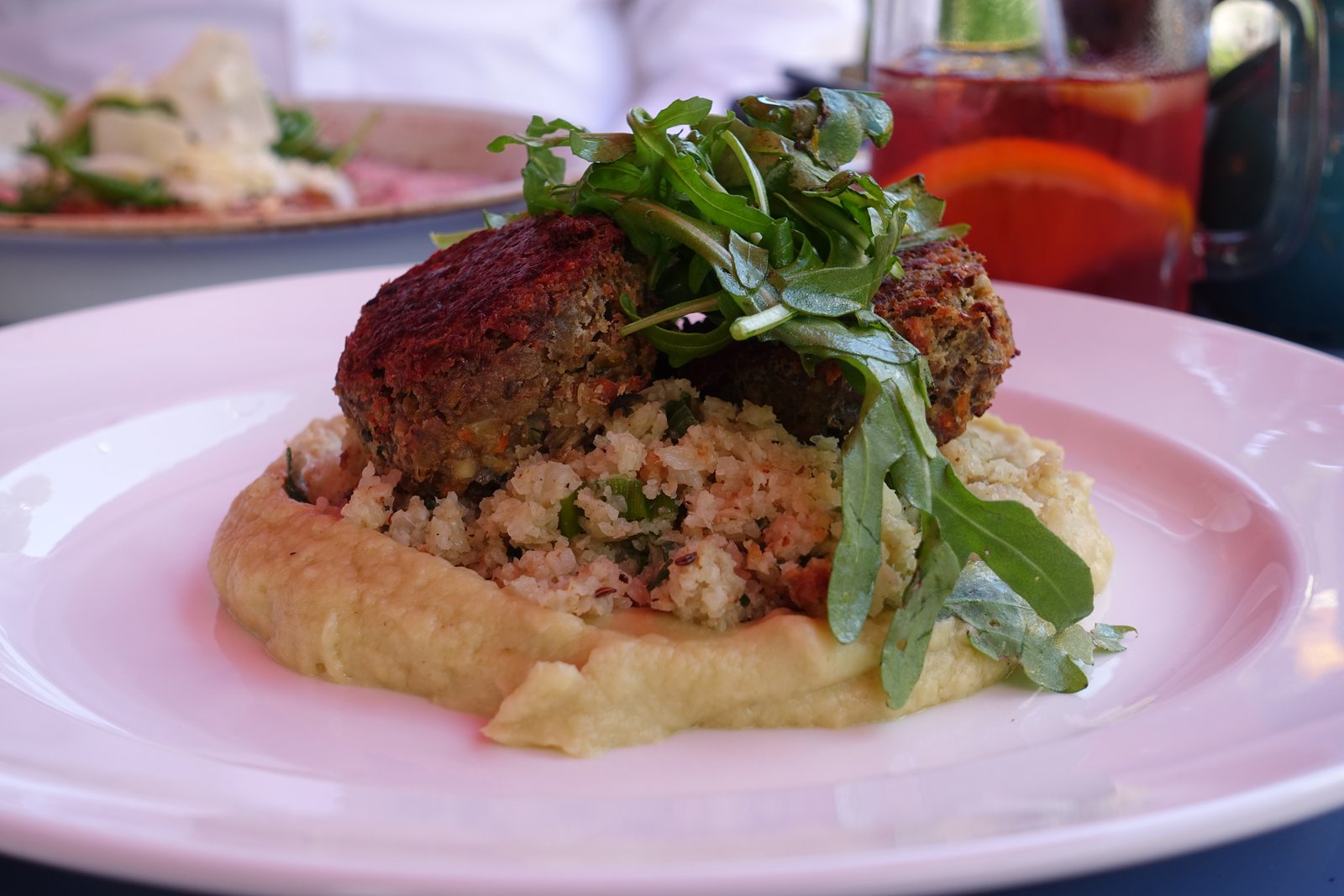 Cozy get-togethers at the aperitif or for lunch/dinner with fine dishes to share - in Schönau right next to the bakery. The dishes are mainly prepared with Swiss ingredients and inspired by the Mediterranean. I can recommend the classic roast beef with pesto rosso and parmesan or the vegi dishes, as in my case cauliflower couscous with artichoke must and falafel. Plus a refreshing homemade ice cream.
