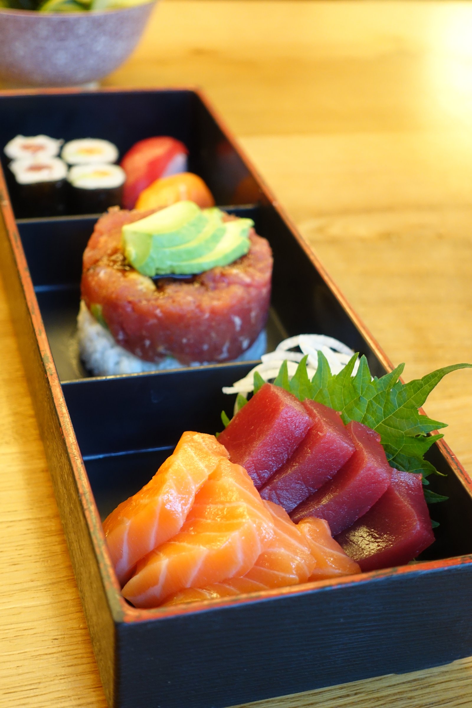 My tip: Edamame with Shichimi sea salt, Gyoza, Bento Tuna, Nasu Miso (fried eggplant with miso paste) and for dessert lychee + chocolate mochi