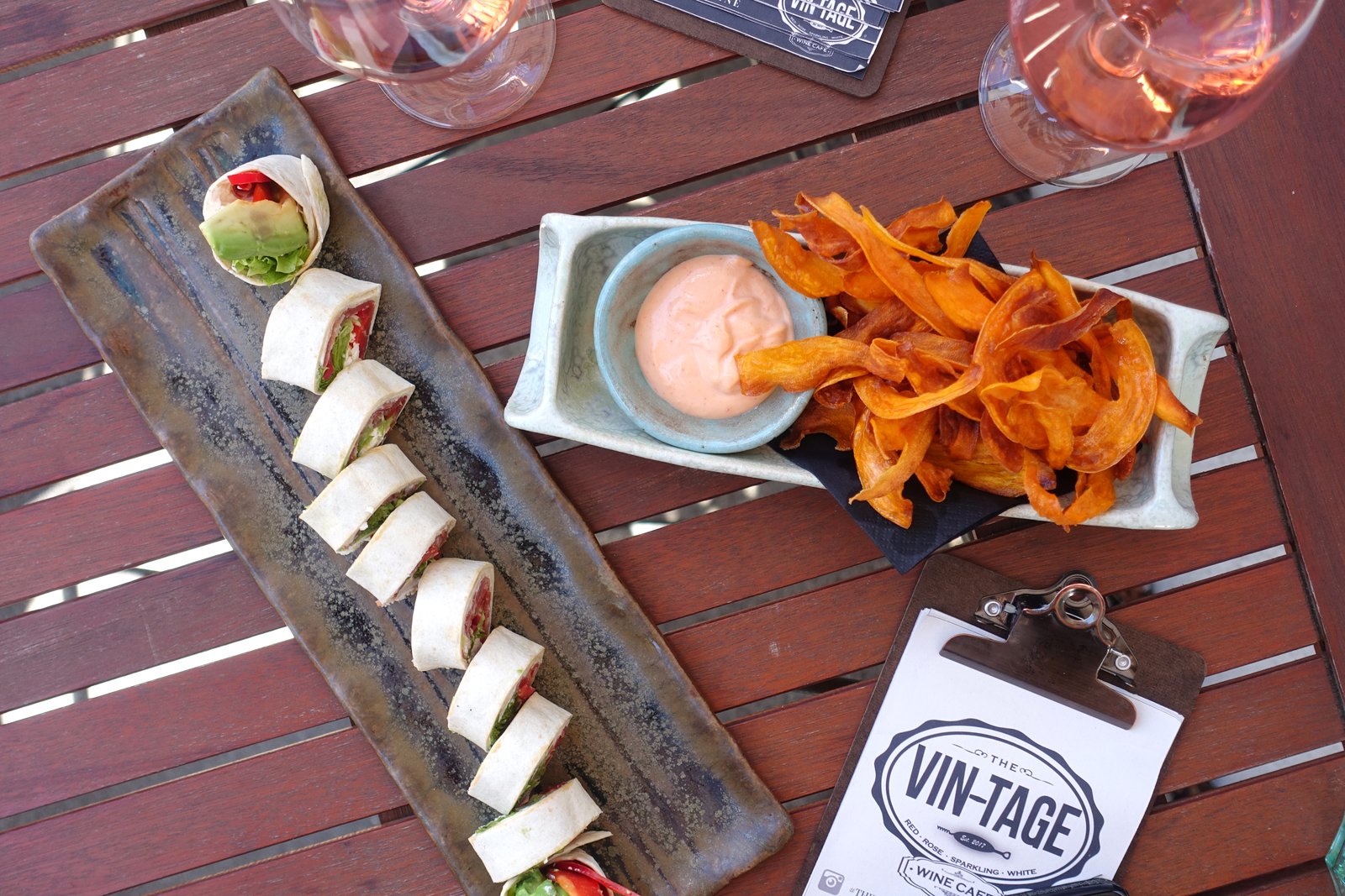 Great wine bar for aperitifs. For dinner there are various bites (fantastic sweet potato chips), tortilla rolls, aperitif plates and the flying dinner with hot and cold dishes. Cozy places can be found inside and outside. The tasted wines can then also be purchased or ordered from home in the online shop.