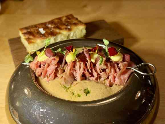 The Weisses Rössli has everything a great restaurant needs—flair, a cozy garden, lots of warmth, and delicious Mediterranean dishes from Giulia Marciano with that certain something. The service team, led by Anna Winter, is friendly, uncomplicated, and happy to advise you on the perfect drink to accompany your meal.